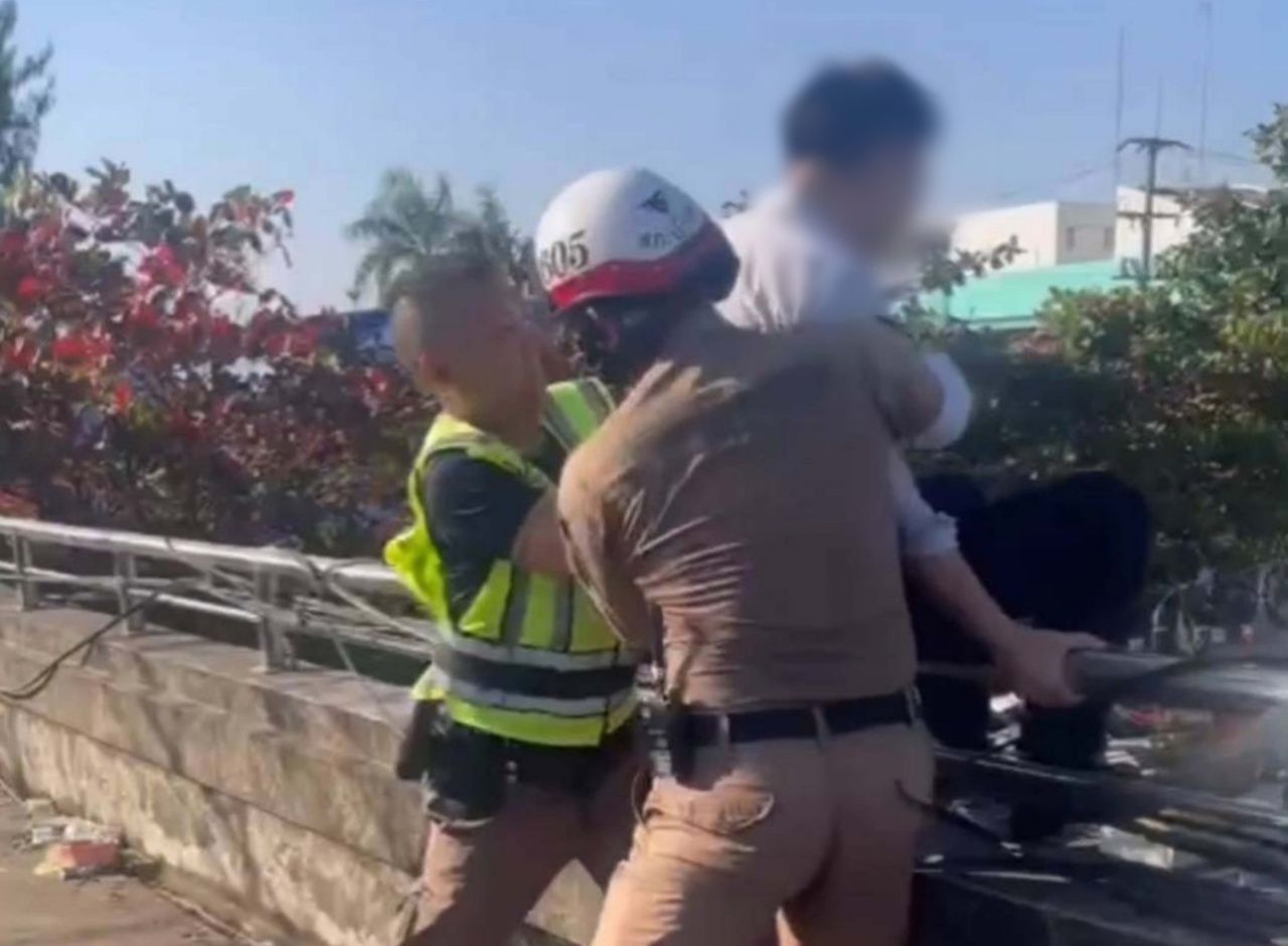 พ.ต.อ.ชุมพล บัวชุม ผกก.สภ.น้ำพอง กล่าวว่า จากกรณีเหตุการณ์เมื่อวันที่ 5 มกราคม 2569 เวลาประมาณ 15.50 น. เจ้าหน้าที่ตำรวจจราจร สถานีตำรวจภูธรน้ำพอง จังหวัดขอนแก่น ได้เข้าช่วยเหลือประชาชนซึ่งอยู่ในภาวะเครียด บริเวณสะพานลอยในพื้นที่รับผิดชอบ โดยเจ้าหน้าที่ได้ปฏิบัติหน้าที่ด้วยความกล้าหาญ เสียสละ อดทน และมีไหวพริบในการแก้ไขสถานการณ์ ใช้การสื่อสารอย่างสุภาพ ใจเย็น และเหมาะสม จนสามารถควบคุมสถานการณ์ไว้ได้อย่างปลอดภัย ก่อนนำผู้ประสบเหตุส่งเข้ารับการดูแลจากแพทย์ ณ โรงพยาบาล และประสานญาติให้รับกลับไปดูแลต่อเป็นที่เรียบร้อยแล้วนั้น