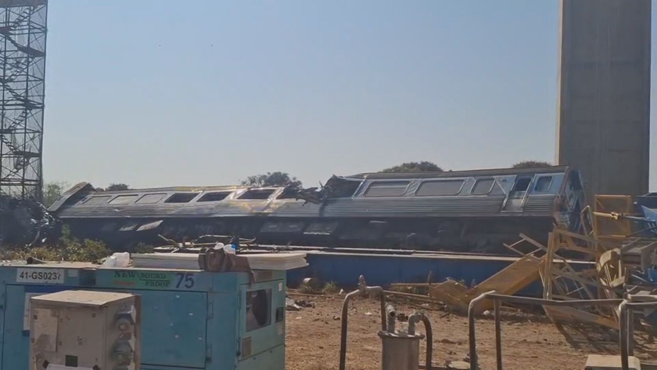 เปิดภาพเหตุการณ์ "เครนยกสะพานรถไฟความเร็วสูง" ถล่มทับขบวนรถไฟโดยสารที่กำลังวิ่งจนตกรางมีเพลิงไหม้ พบผู้บาดเจ็บประมาณ 30 ราย