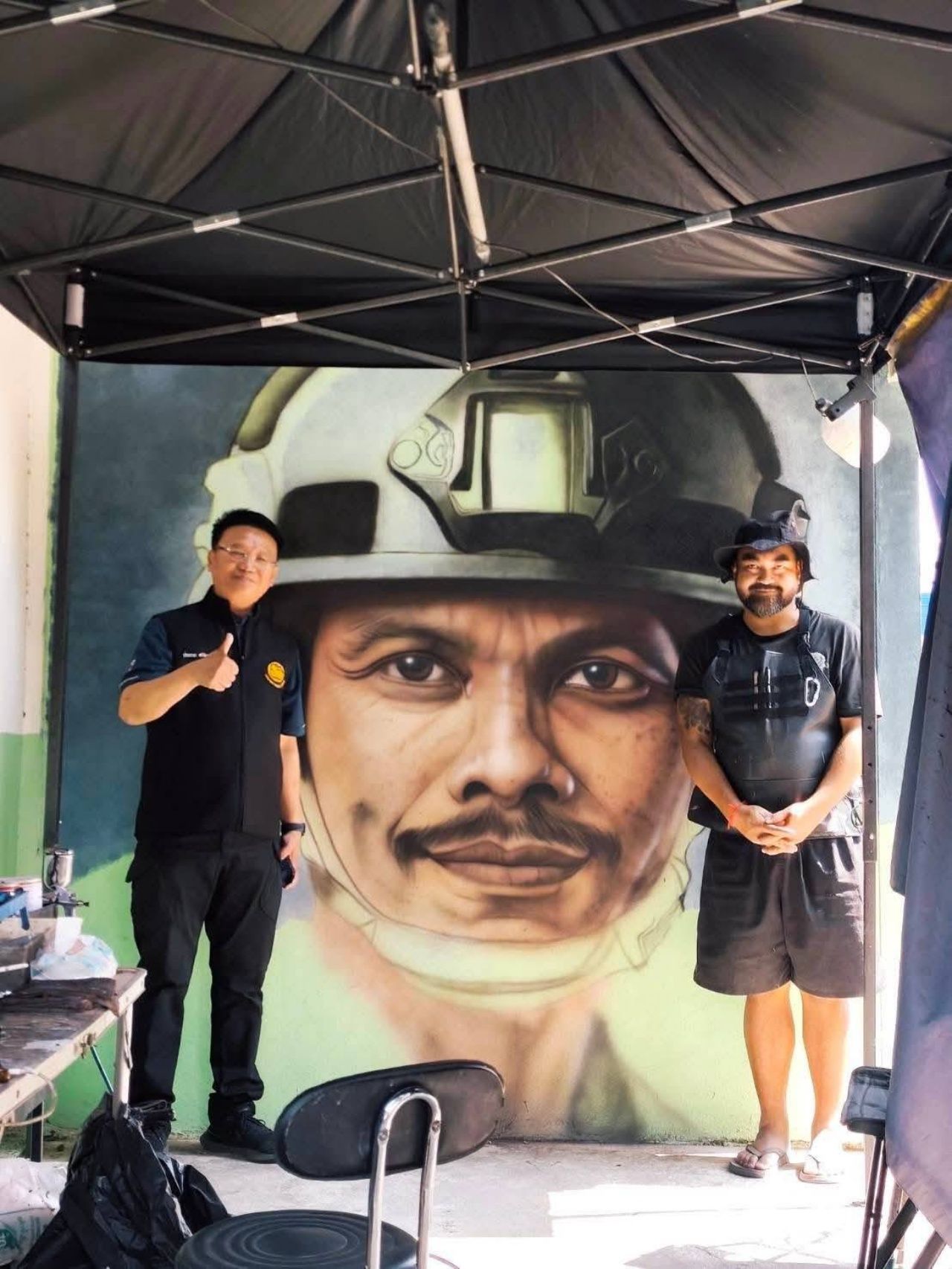 สำหรับความคืบหน้าการวาดภาพวันนี้ มีความคืบหน้าไปมากกว่า 85 % แล้ว เหลือเพียงภาพ 46 วีรบุรุษทหารกล้าพลีชีพ ที่ต้องใช้เวลาเก็บรายละเอียด ซึ่งคาดว่าจะใช้เวลาวาดให้แล้วเสร็จทั้งหมด ภายใน 2-3 วัน โดยเฉพาะภาพใบหน้าจ่าเริงก็วาดใกล้เสร็จแล้ว ส่วนภาพย่าอุ้มหลานชายน้องน้ำโขง ที่วาดบนแท็งก์น้ำ ก็เสร็จแล้วเช่นกัน โดยมีข้อความทั้งภาษาไทยและภาษาอังกฤษด้วย มีใจความระบุว่า "24 ก.ค.68 กัมพูชา เปิดฉากโจมตีไทย ด้วยการยิงจรวด BM-21 ในพื้นที่บริเวณ อ.กาบเชิง จ.สุรินทร์ ส่งผลให้น้องน้ำโขง อายุ 8 ขวบ เสียชีวิตในอ้อมแขนของย่า"