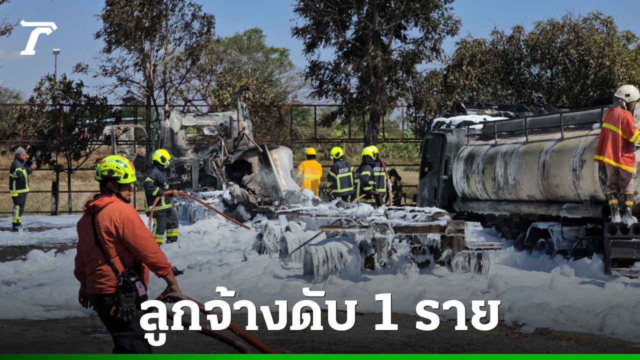 เหตุไฟไหม้รถบรรทุกน้ำมัน ในคลังที่ขอนแก่น ลูกจ้างทำหน้าที่ขับรถ ดับ 1 ราย เจ้าหน้าที่ยังฉีดโฟมเลี้ยงหวั่นปะทุ รอสอบสาเหตุ คาดเสียหายประมาณ 8 ล้านบาท