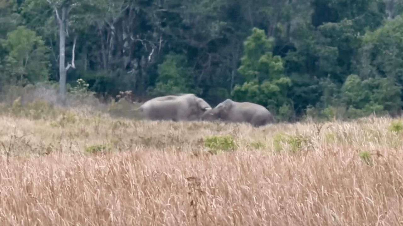 คลิปหาดูยาก “ช้าง” ชน “ช้าง” พลายด้วนปะทะพลายตะแบกน้อย ช้างป่าเขาใหญ่ สู้กันจนงาหัก ส่งงาที่พบให้เจ้าหน้าที่เกี่ยวข้องเก็บรักษาแล้ว