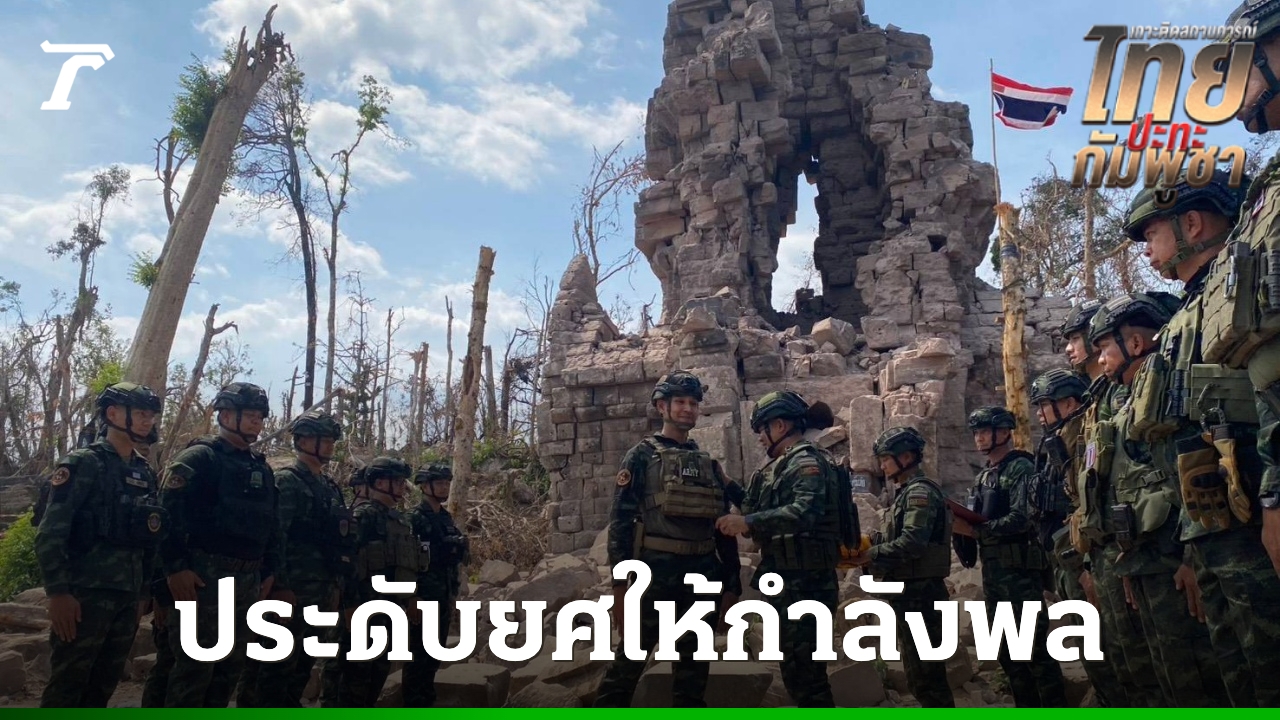 ผบ.ช.พัน.1 ประดับยศให้แก่กำลังพลนายทหารประทวน จำนวน 10 นาย ที่ออกปฏิบัติราชการสนามชายแดน บนปราสาทตาควาย จ.สุรินทร์ พร้อมให้โอวาทเน้นย้ำมีวินัย และเสียสละ