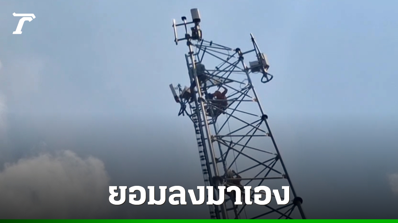 หนุ่มวัย 32 ปี ปีนเสาสัญญาณสูง 36 เมตร ยอมลงมาเองก่อนวิ่งหนี สุดท้ายไม่รอด ตำรวจคุมตัวได้ทัน พบมีอาการเหนื่อย อิดโรย บ่นหิวข้าว หลังใช้เวลาอยู่บนเสานานกว่า 2 วัน