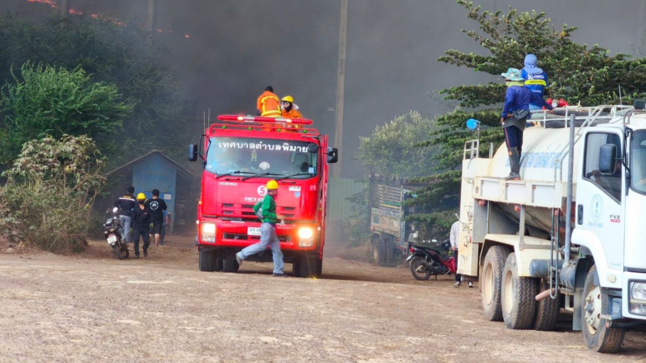 เกิดเหตุเพลิงไหม้โรงงานน้ำตาลพิมายโคราช ยังควบคุมเพลิงไม่ได้ ควันไฟปกคลุมทั่ว ต.หนองระเวียง เร่งอพยพประชาชนไปยังที่ปลอดภัย