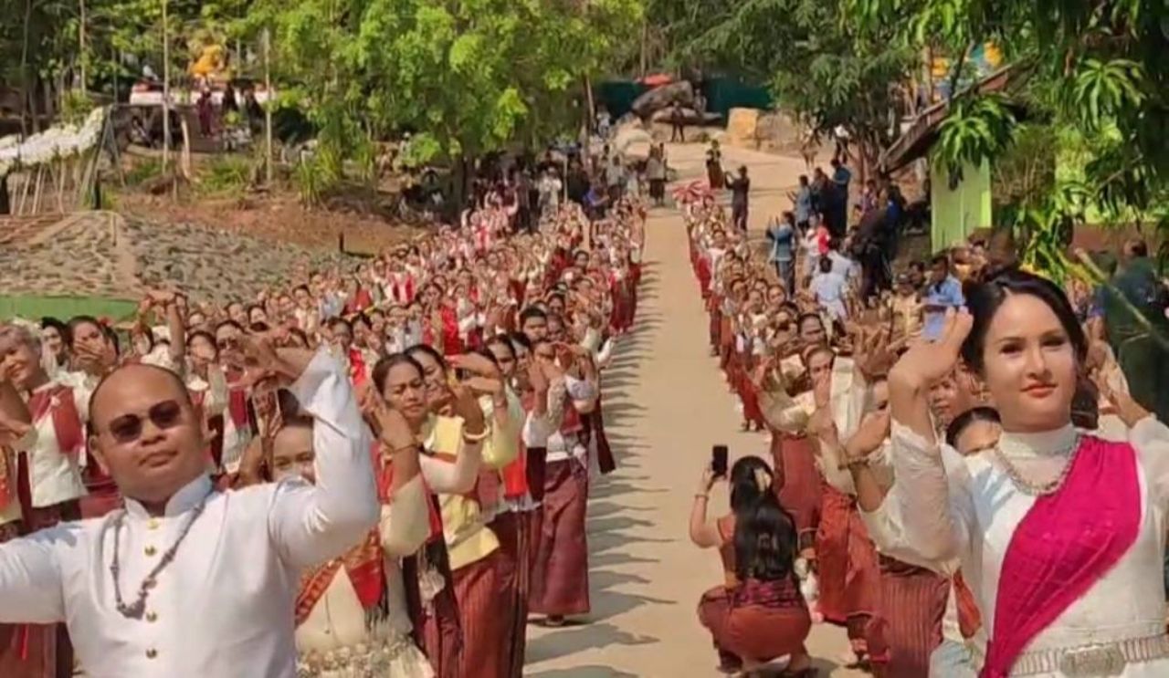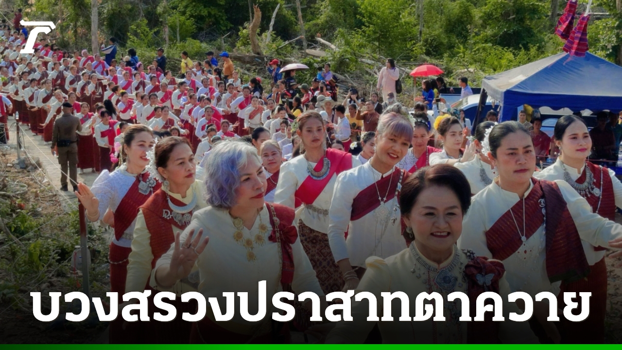 พิธีบวงสรวงอนุสาวรีย์วีรบุรุษ "ปราสาทตาควาย" รำลึกถึงวีรชนผู้กล้า ปกป้องอธิปไตยชายแดนไทย-กัมพูชา ขณะที่นางรำกว่า 200 คน ร่วมรำบวงสรวงสุดตระการตา