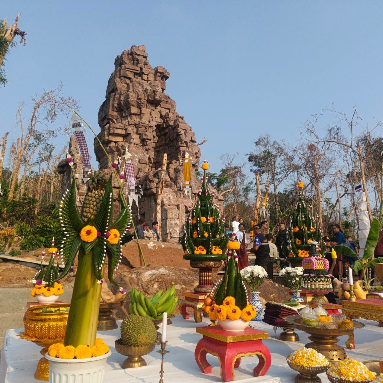 โดยไฮไลต์สำคัญในวันนี้ คือการจัดพิธีบวงสรวง และรำถวาย อนุสาวรีย์พิทักษ์ไทย ปราสาทตาควายอย่างยิ่งใหญ่ ซึ่งนับเป็น “ครั้งแรก” นับตั้งแต่สิ้นสุดเหตุการณ์สู้รบที่ฝ่ายไทยสามารถสถาปนาความมั่นคงในพื้นที่ได้สำเร็จ โดยองค์การบริหารส่วนตำบลบักได ร่วมกับอำเภอพนมดงรัก จัดกิจกรรมนี้ขึ้นเพื่อฟื้นฟูประเพณีและสร้างขวัญกำลังใจให้แก่ประชาชน