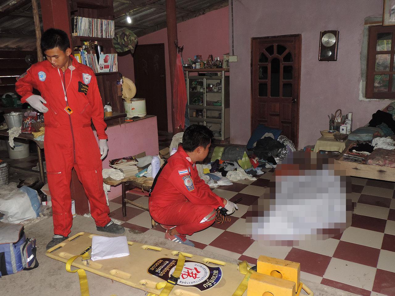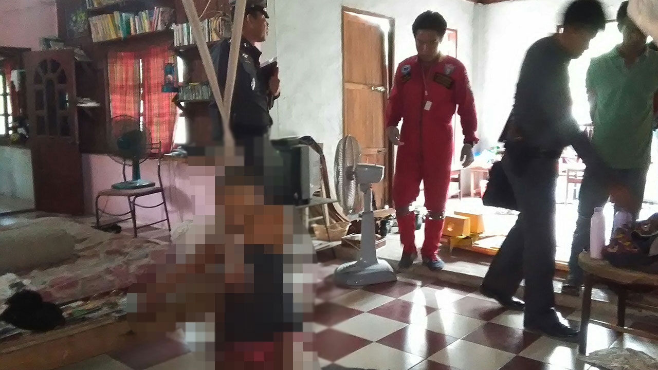 เมื่อไปถึงพบศพนายไชยา ลาวรรณ อายุ 54 ปี เจ้าของบ้านเสียชีวิต อยู่ในท่านั่งเหยียดขากับพื้นข้างเตียงนอน โดยมีผ้าสีขาวที่ผูกติดกันโยงลงมาจากขื่อ เป็นรูปตัววีรัดที่คอและแขนทั้งสองไขว้กันไปข้างหน้าข้างลำคอ คาดว่าเสียชีวิตมาแล้วไม่ต่ำกว่า 8 ชั่วโมง