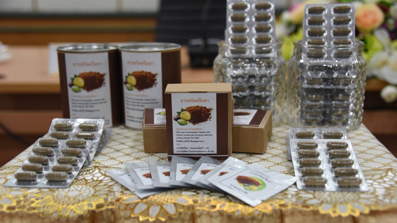 คณะเภสัชศาสตร์ มหาวิทยาลัยมหาสารคาม วิจัยพบตำรับยา 'ตรีผลา' ที่ประกอบด้วย สมอไทย สมอพิเภก และมะขามป้อม มีฤทธิ์ต้านอนุมูลอิสระ แก้ท้องผูก ต้านเซลล์มะเร็ง รวมถึงช่วยลดไขมันในเลือด