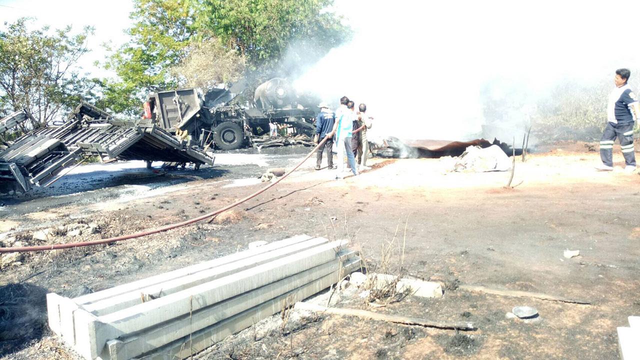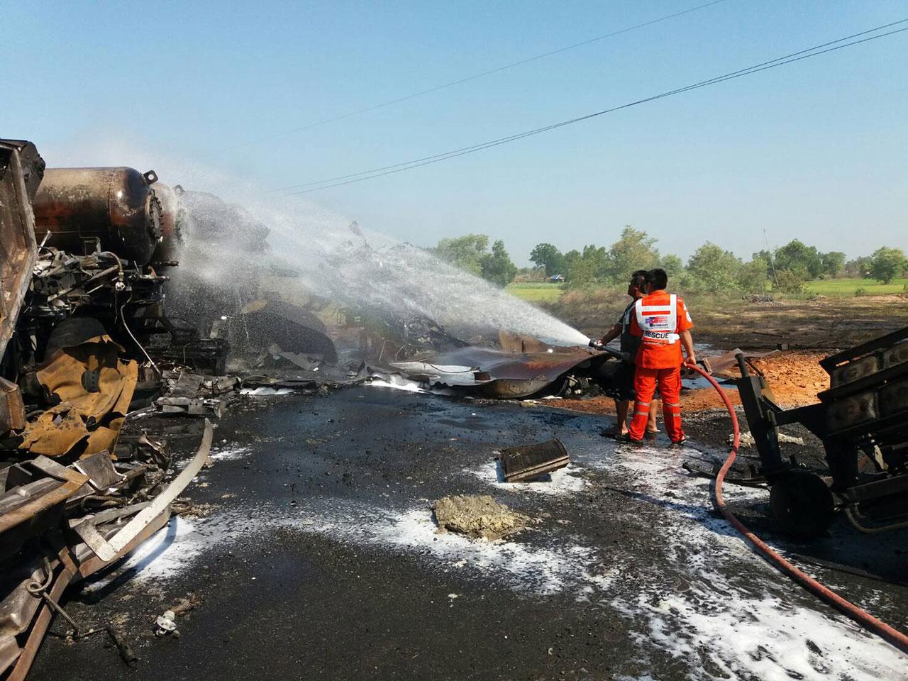 ต่อมา จากการตรวจสอบเบื้องต้นพบว่า เหตุเกิดบนถนนแจ้งสนิท จากร้อยเอ็ดไปยโสธร ช่วงบ้านหวายหลึม-บ้านมะบ้า หมู่ 3 ต.มะบ้า อ.ทุ่งเขาหลวง จ.ร้อยเอ็ด ต้นตอการระเบิดมาจากรถบรรทุกแก๊สที่แยกบรรจุเป็นถังขนาดใหญ่ หรือที่เรียกว่าแคปซูล