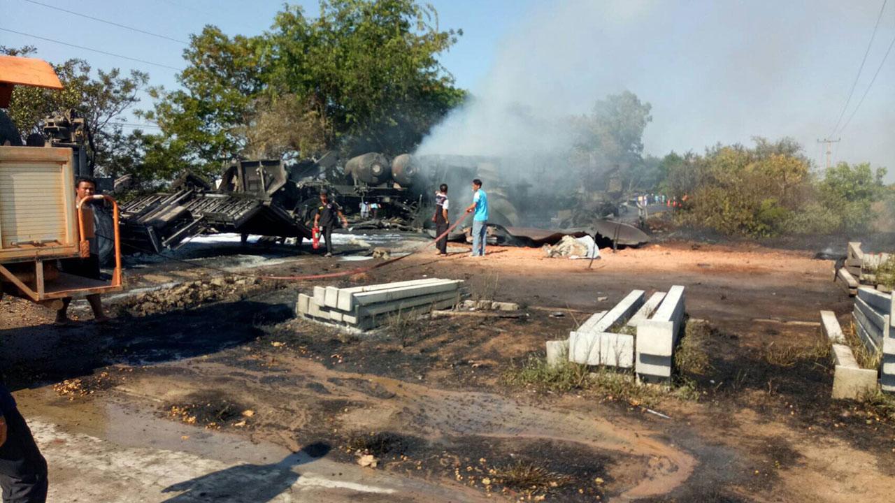 รถบรรทุกแคปซูลแก๊ส เกิดระเบิดอย่างรุนแรงบนถนนช่วง อ.ทุ่งเขาหลวง จากร้อยเอ็ดไปยโสธร ลูกไฟสีเพลิงพวยพุ่งขึ้นไปในอากาศ มองเห็นไปไกลนับสิบกิโลเมตร เจ้าหน้าที่เร่งเข้าควบคุม ล่าสุดยังไม่มีรายงานผู้บาดเจ็บล้มตาย...