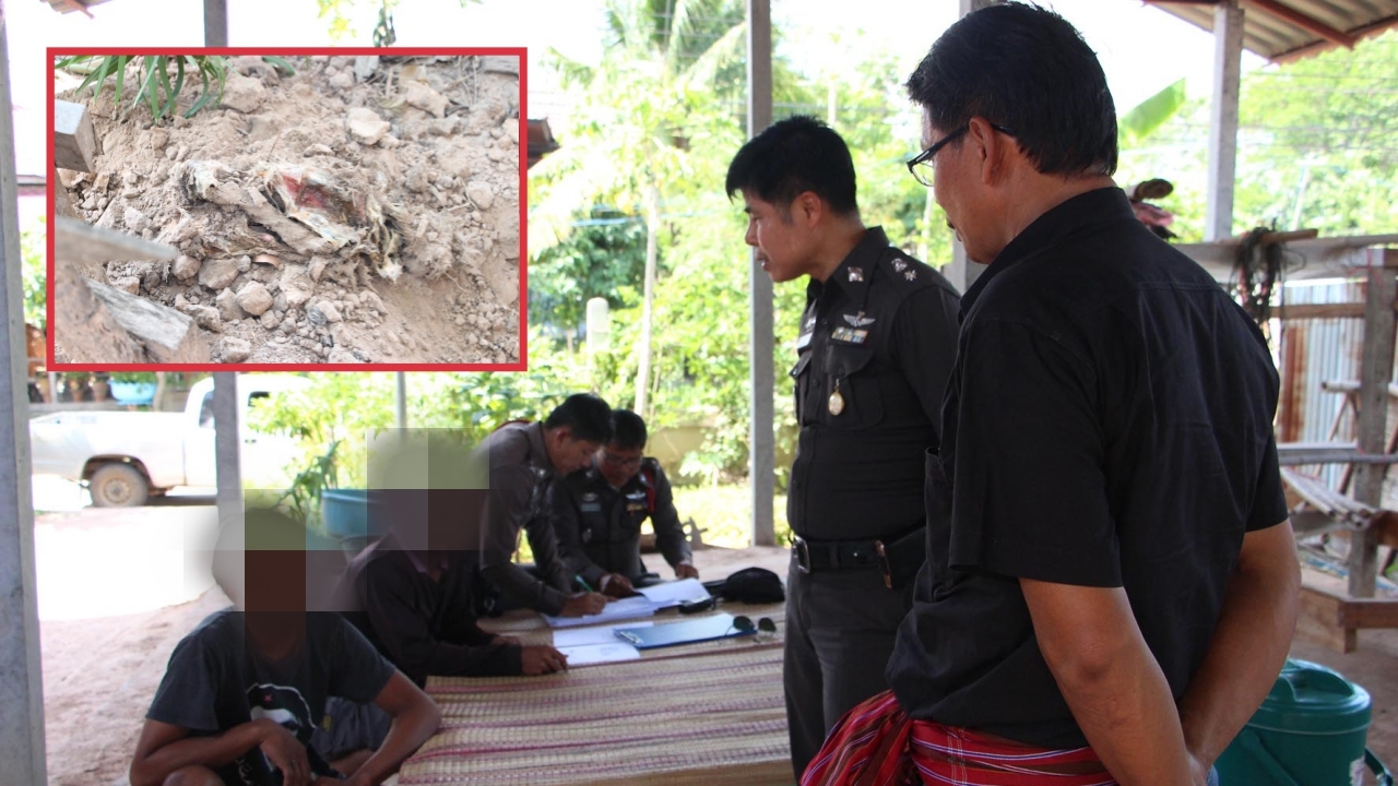 เบื้องต้น เจ้าหน้าที่พบกับ นายไก่ (นามสมมติ) อายุ 45 ปี ซึ่งนายไก่ให้การว่า ไม่รู้ไม่เห็นถึงเรื่องดังกล่าว แต่พอเจ้าหน้าที่ได้ไปตรวจค้นบริเวณรอบๆ บ้านก็พบจุดต้องสงสัยมีร่องรอยคุ้ยดินฝังกลบใหม่ คาดว่าจะเป็นจุดที่ใช้ฝั่งซากศพของสุนัข พอเจ้าหน้าที่ขุดลงไปก็พบซากสุนัขถูกฝังอยู่ในจุดดังกล่าวจริง สภาพเหมือนเพิ่งนำมาฝังได้ประมาณ 1-2 วัน โดยนายไก่อ้างว่า ซากสุนัขดังกล่าว มีลูกชายของตนกับเพื่อนที่มากินเหล้าด้วยกันช่วงสงกรานต์