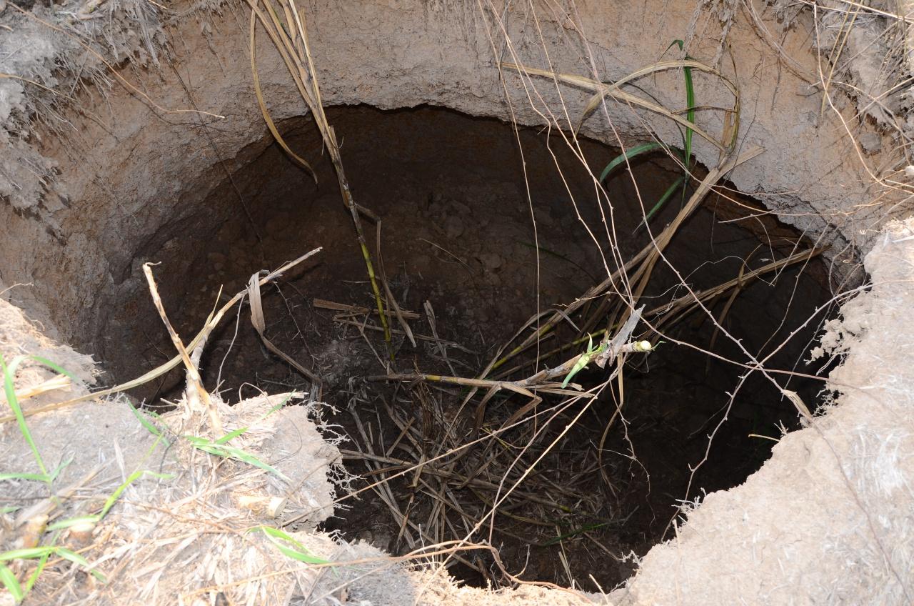 เมื่อวันที่ 19 เม.ย. 60 นายแสวง บัวใหญ่รักษา กำนันตำบลด่านช้าง อ.นากลาง จ.หนองบัวลำภู พร้อมด้วย นายสุขสันต์ เคนทวาย ปลัด อบต.ด่านช้าง นายประสิทธิ์ ไชยเวช ปภ.จังหวัดหนองบัวลำภู ร.อ.สงบ สุรินราช ทหาร กกล.รส.หนองบัวลำภู เข้าตรวจสอบหลุมยุบจำนวน 16 หลุม ที่พบในไร่อ้อยพื้นที่บ้านด่านช้าง บางหลุมกว้าง 2 เมตร ลึก 1 เมตร บางหลุมกว้าง 5 เมตร ลึก 3 เมตร บางหลุมกว้าง 3 เมตรลึก 5 เมตร พบกระจัดกระจายกลางไร่อ้อย บางจุดมีอยู่ใกล้กันสามหลุม บางหลุมเจ้าหน้าที่ได้ทดสอบกระโดดลงไปพบว่าพื้นดินอ่อนนุ่มแต่ไม่ถึงกับทรุดตัว แต่บางหลุมยังดูมีทีท่าว่าจะทรุดตัวลงไปอีก จึงเป็นที่กังวลว่าจะมีคนหรือเครื่องจักรตกลงไปจนเกิดอันตราย