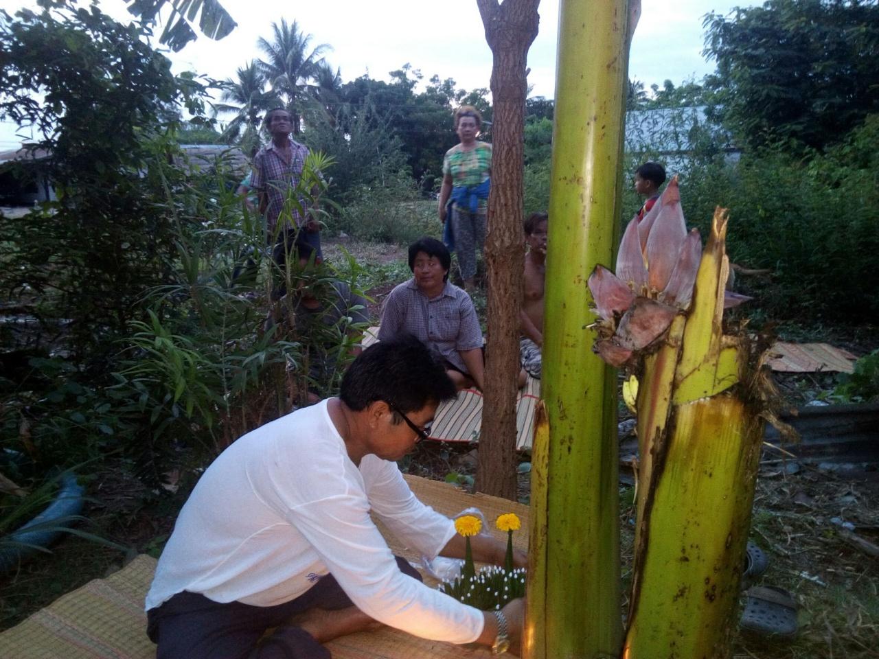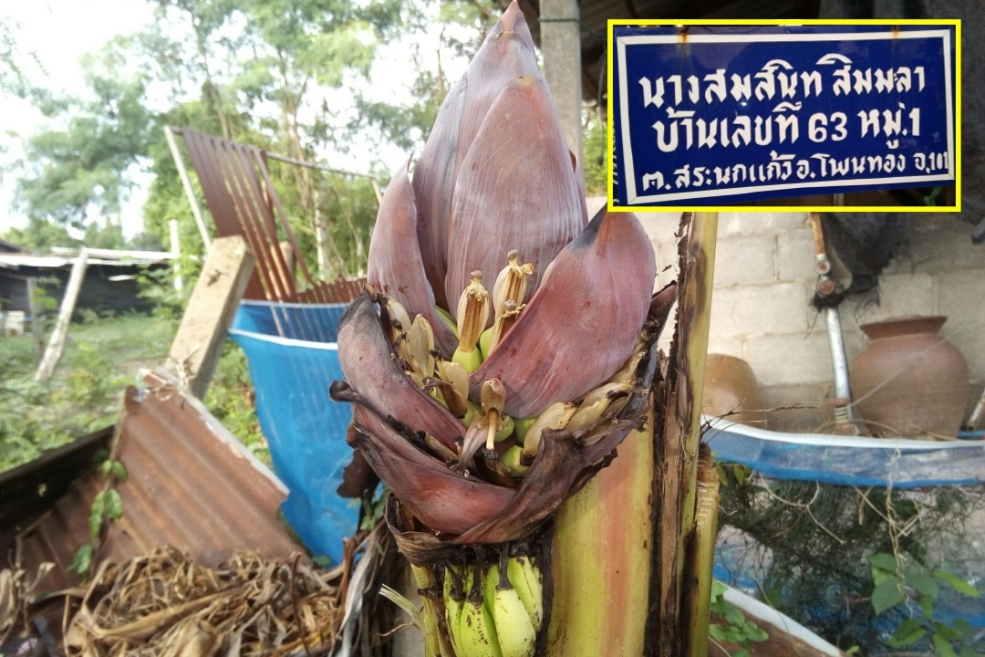 เมื่อวันที่ 15 พ.ค. 60 มีชาวบ้านหลากหลายอาชีพจากหลายหมู่บ้านและหลายอำเภอ พากันเข้าไปในสวนกล้วยน้ำว้า หรือที่ชาวบ้านภาคอีสานเรียกว่า ก้วยอีออง หลังบ้านเลขที่ 63 หมู่ที่ 1 บ้านหนองนกเป็ด ต.สระนกแก้ว อ.โพนทอง จ.ร้อยเอ็ด ซึ่งเป็นบ้านของ นางสมสนิท สิมมาลา อายุ 79 ปี ซึ่งเป็นแม่ม่าย สามีเสียชีวิตไปกว่า 20 ปีแล้ว เพื่อเข้าไปจุดธูปเทียนขอเลขเด็ดจากตอต้นกล้วยน้ำว้า ซึ่งสูงจากพื้นดินเกือบ 80 เซนติเมตร แต่มีปลีกล้วยแทงจากกลางลำต้นและมีผลออกเหมือนปกติเพียงแต่ชี้ขึ้นฟ้า