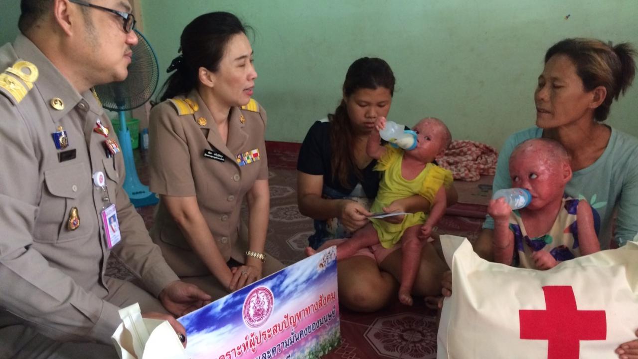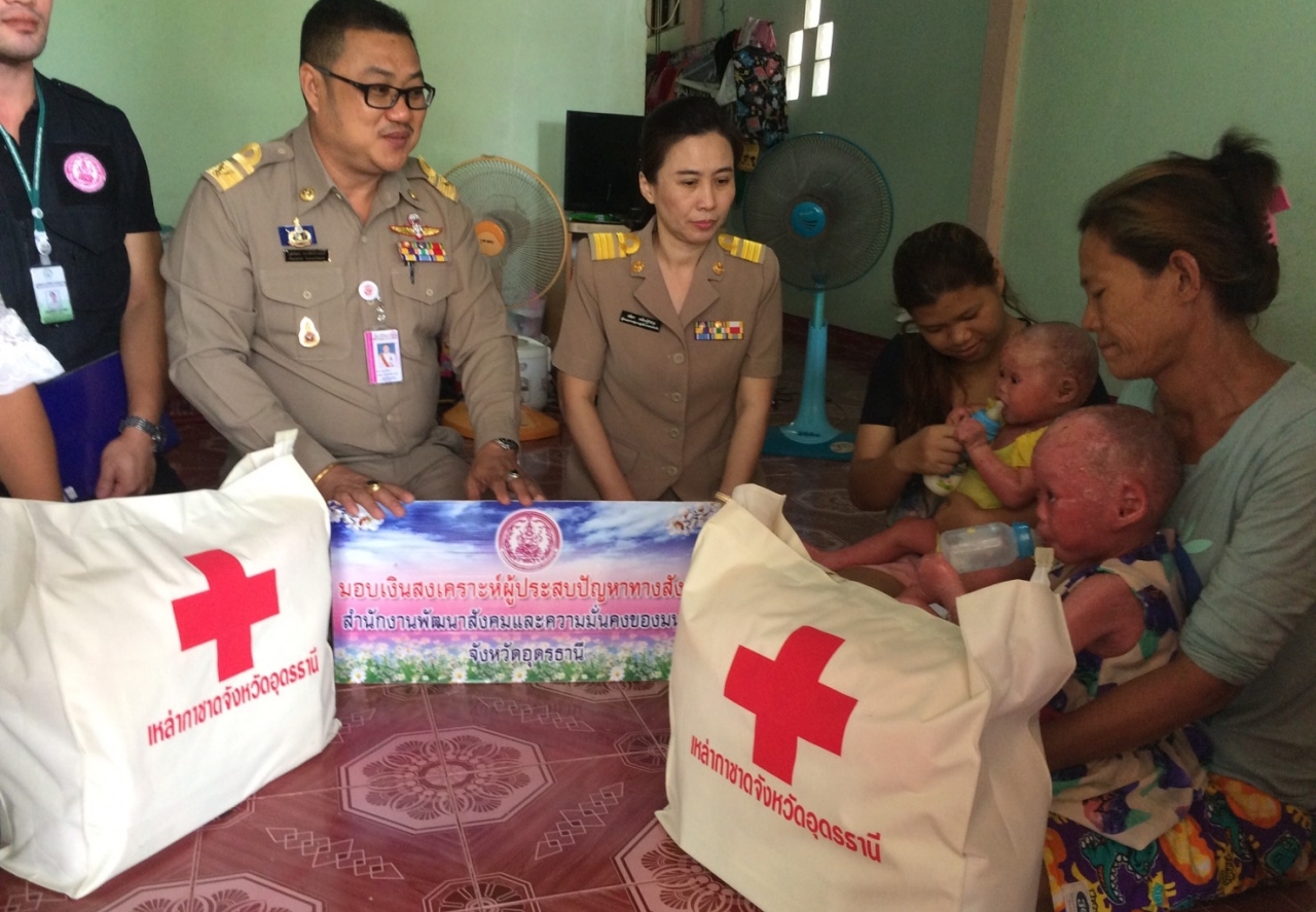 เมื่อวันที่ 16 พ.ค.60 นายภูมิพัฒน์ ธนาสิทธิตานนท์ พัฒนาสังคมและความมั่นคงของมนุษย์ พร้อมด้วยนางรณิดา เหลืองฐิติสกุล ผอ.ศูนย์ดำรงธรรมอุดรธานี พร้อมด้วยเจ้าหน้าที่ลงพื้นที่บ้านขาวัว ที่เรือนแถวห้องพักเลขที่ 205 หมู่ที่ 5 บ้านขาวัว ต.พังงู อ.หนองหาน จ.อุดรธานี เพื่อสอบถามรายละเอียดและการให้ความช่วยเหลือในเบื้องต้นกับสองพี่น้องที่เป็นโรคดักแด้มาตั้งแต่เกิดคือ ด.ญ.ปริฉัตร วงศ์ผาบุตร อายุ 5 ปี และด.ญ.เมษา วงศ์ผาบุตร อายุ 2 ปี สองพี่น้องที่ป่วยเป็นโรคดักแด้มาตั้งแต่เกิดอาศัยอยู่กับตาและยายคือนางสำเนียง สองเมือง และนายวิชาญ สองเมือง ที่ป่วยเป็นโรคไตวาย ส่วนแม่ของเด็กมีอาการป่วยทางสมองได้อาศัยเพียงเงินหลานทั้งสองและแม่ของเด็ก เบี้ยคนพิการมาใช้จ่ายในครอบครัว