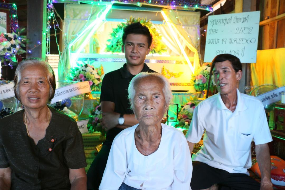 ยายเจียง เล่าว่า รู้สึกเสียใจที่ตาชุนมาจากไป อยู่กินกันมา 80 ปี ไม่เคยทะเลาะกันจนถึงรุนแรง มีปากเสียงกันบ้างก็เล็กน้อย ตาชุนเป็นคนขยัน รับผิดชอบครอบครัว รักยายและลูกหลานมาก เมื่อตาชุนจากไปก็รู้สึกเหงาต้องมาอยู่คนเดียว ถึงจะมีลูกหลานมาอยู่ด้วย ก็ไม่สุขใจ สุขกาย เท่าอยู่ใกล้ตาชุน ก่อนที่ตาชุนจะเสียชีวิต มีร่างกายสุขภาพแข็งแรง ไม่เจ็บป่วย มองเห็นชัด ได้ยิน พูดคุยเป็นปกติ ช่วยเหลือตัวเองได้ ตากับยายจะกินข้าวกับผัก และกล้วยน้ำว้าวันละ 3 ลูก ส่วนเนื้อสัตว์นานๆ จะกินสักครั้ง