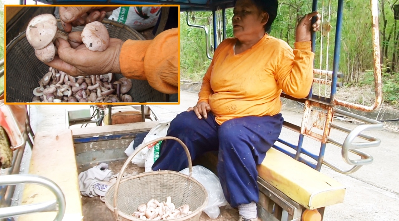 นางนาง เปิดเผยว่าเข้าป่าหาเก็บเห็ดมาหลายสิบปีแล้ว รู้จักเห็ดชนิดไหนกินได้ ชนิดไหนกินไม่ได้ เห็ดผึ้งที่ตนเลือกเก็บมานี้ระยะนี้กำลังขึ้นให้เก็บจำนวนมาก และเป็นที่นิยมของผู้สูงอายุ เนื่องจากมีรสขมนำไปทำอาหารได้หลายอย่าง ไม่ว่าจะทำเป็นแกง ลวกจิ้มน้ำพริก หรือยำ ราคาไม่แพงเกินไป กิโลกรัมละร้อยกว่าบาท