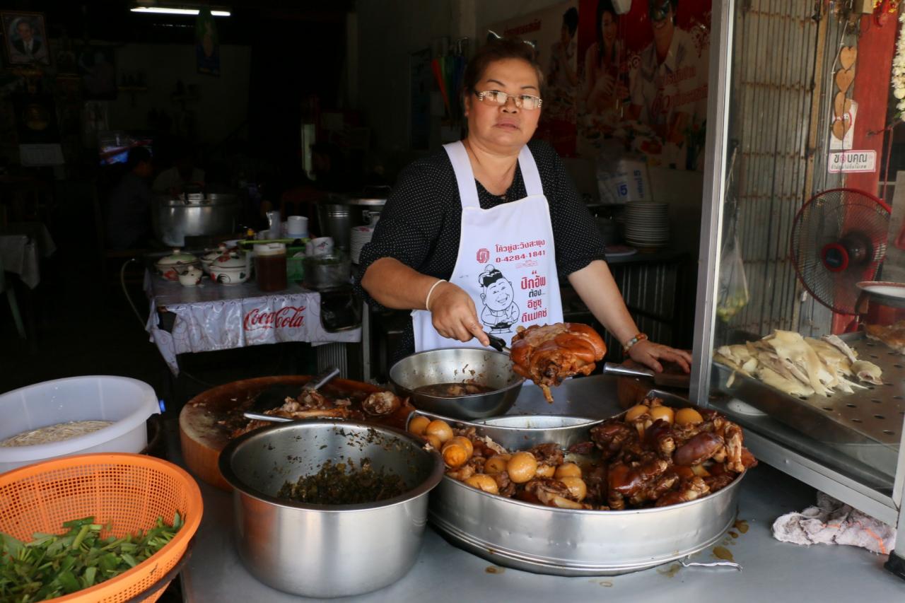 เจ้าของร้าน กล่าวด้วยว่า ส่วนเวลาขายก็จะขายเฉพาะช่วงเช้าและเที่ยงวัน โดยแต่ละวันขายจนไม่มีเวลาคุย ลูกค้าเต็มร้านไม่มีที่นั่งให้ บางรายต้องยืนรอหรือซื้อกลับบ้าน ขายในราคาจานละ 40 บาท พิเศษ 45 บาท บ่ายก็หมดแล้ว นอกจากข้าวขาหมูคากิแล้ว ที่ร้านยังมีเย็นตาโฟรสเด็ด ที่อร่อยไม่แพ้ที่อื่นเลย น้ำซุปเข้มข้น เส้นไม่เหนียว เปิดร้านทุกวันตั้งแต่ 06.00 – บ่าย 2 โมง ไม่มีวันหยุด.
