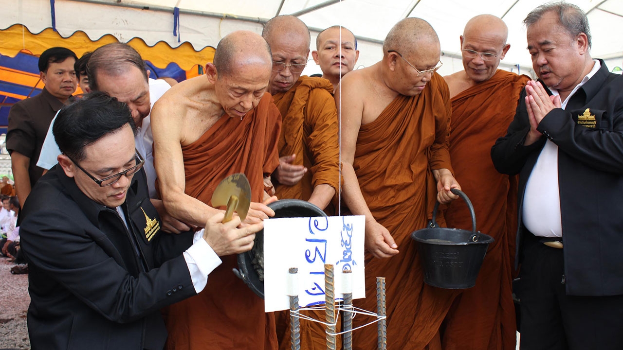 จากนั้น นายสุชัย บุตรสาระ รอง ผวจ.อุดรธานี นำข้าราชการ พ่อค้า ประชาชน ร่วมประกอบพิธีบวงสรวงสิ่งศักดิ์สิทธิ์ โปรยข้าวตอกดอกไม้ จุดที่จะมีการตอกเสาเอก จากนั้นพระอาจารย์สุดใจ เจ้าอาวาสวัดเกสรศีลคุณ หลวงพ่ออินถวาย สันตุสสโก และพระสงฆ์ รวมทั้งนายสุชัย บุตรสาระ รอง ผวจ.อุดรธานี พร้อมข้าราชการ พ่อค้าประชาชน ได้ร่วมเทปูน ฐานราก 4 หลุมแรกปฐมฤกษ์ (ทางขึ้นเจดีย์) พิพิธภัณฑ์ ธรรมเจดีย์ พระธรรมวิสุทธิมงคล หลวงตามหาบัว.
