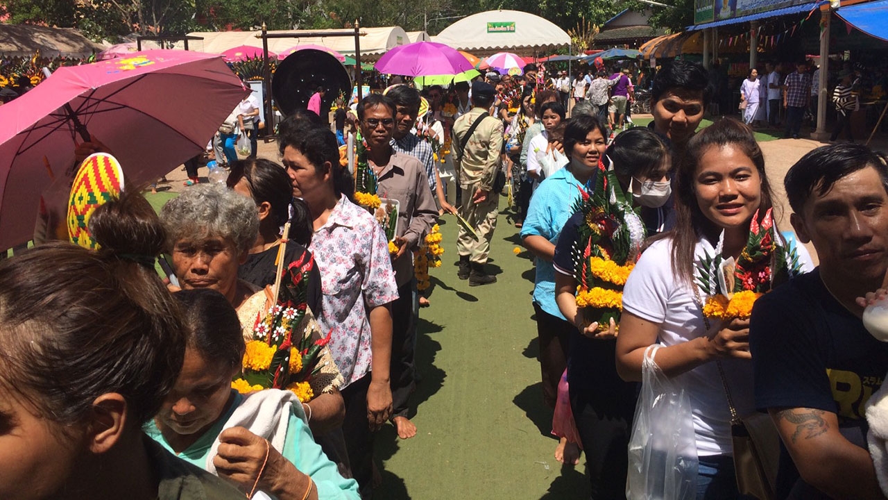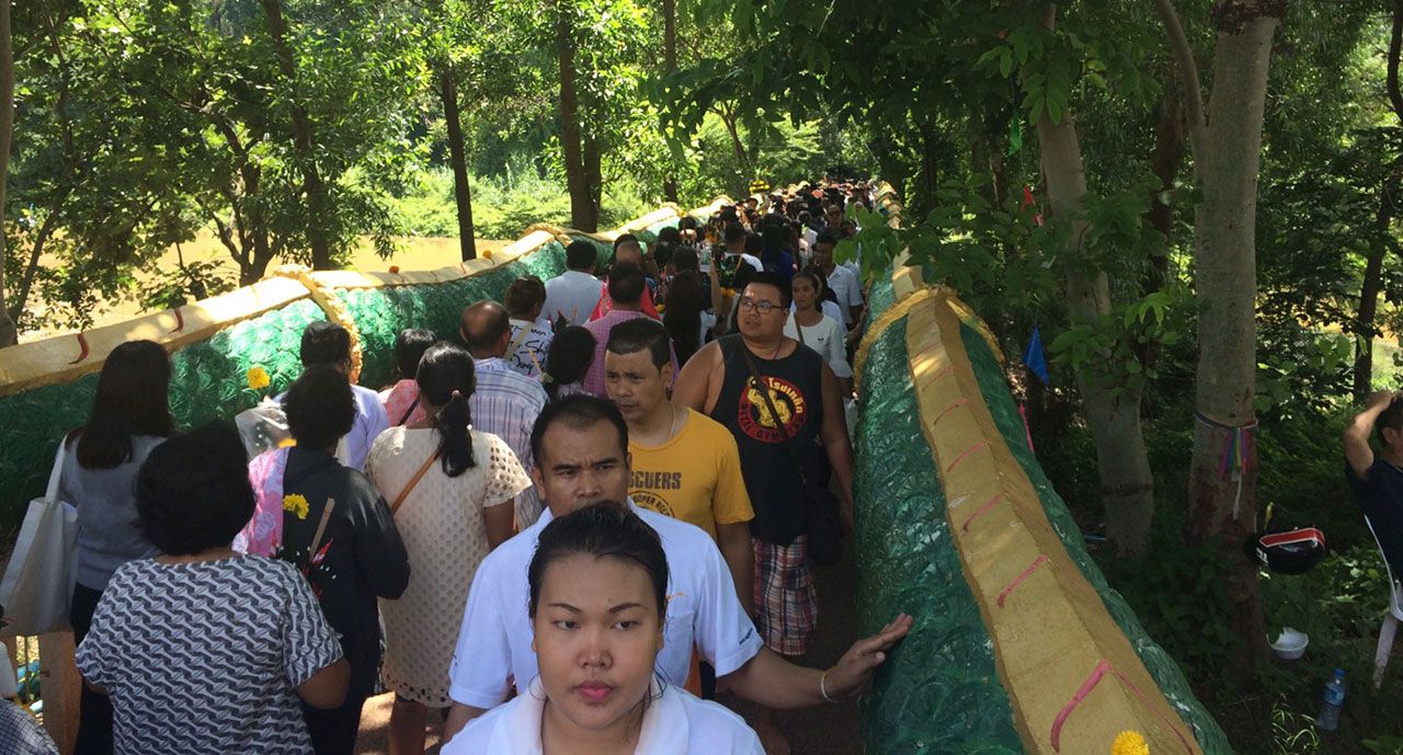เมื่อวันที่ 27 มิ.ย.60 ผู้สื่อข่าวรายงานว่า จากกรณีที่ ชาวบ้าน ประชาชน และนักท่องเที่ยว เดินทางมากราบไหว้ ปู่ศรีสุทโธ และแม่ย่าศรีประทุมมา ที่วังนาคินทร์ คำชะโนด ในช่วงวันหยุด เสาร์-อาทิตย์ และสัปดาห์สุดท้ายใกล้วันหวยออกจำนวนมาก และเดินทางมาจากทุกสารทิศ รวมทั้งพี่น้อง สปป.ลาว ก็เดินทางมาเพื่อไหว้ขอพรขอโชคขอลาภ แต่ละแถวต่อคิวยาวหลายกิโลเมตร ส่วนมากจะมาเป็นกลุ่ม เป็นคณะ ครอบครัว เดินทางมากันทั้งคืนเพื่อรอเข้าคิวเข้าไหว้ วันไหนที่มีผู้ศรัทธาจำนวนมากจะต้องยืนรอคิวอยู่นานเกือบ 4 ชั่วโมง ถึงจะเข้าถึงหน้าศาลเจ้าปู่ศรีสุทโธและแม่ย่าศรีประทุมมา มีทั้งคนเฒ่าคนแก่และคนพิการที่มาขอพร ถือว่าเป็นเรื่องลำบากมาก เจ้าหน้าที่จะต้องคอยบริการกับประชาชนที่มาเข้าแถว วันไหนอากาศร้อนต้องแจกยาดมแก้การเป็นลมแดดด้วย