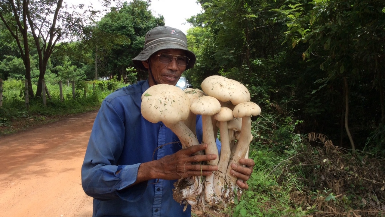 วันที่ 30 มิ.ย.60 ผู้สื่อข่าวลงพื้นที่ตรวจสอบ หลังมีข่าวชาวบ้านจั่น ต.โนนผึ้ง อ.วารินชำราบ จ.อุบลราชธานี พบเห็ดยักษ์ พุ่มใหญ่ สูงกว่า 1 ฟุต เป็นเห็ดหายาก หวังได้โชคในการเสี่ยงดวงวันหวยออก