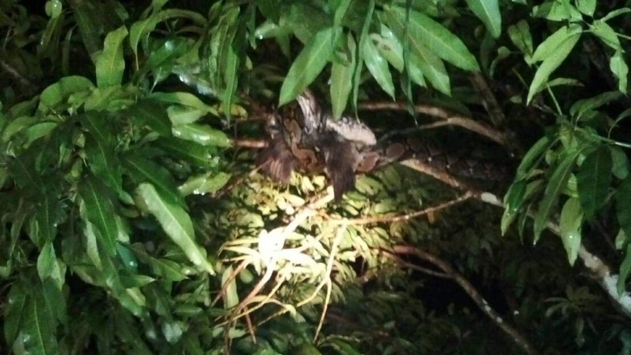 จากการสอบถามชาวบ้านทราบว่า งูเหลือมตัวดังกล่าวกำลังเข้ามากินไก่ของชาวบ้านที่นอนอยู่บนต้นมะม่วง จนมีคนไปเห็นจึงแจ้งเข้าหน้าที่กู้ภัยฯให้มาช่วยจับ เบื้องต้นงูเหลือมมีน้ำหนักประมาณ 20 กิโลกรัม ความยาว 4 เมตร ทางเจ้าหน้าที่กู้ภัยฯได้ช่วยกันจับใส่ถุงปุ๋ยก่อนที่จะนำงูเหลือมไปปล่อยตามป่าธรรมชาติต่อไป.