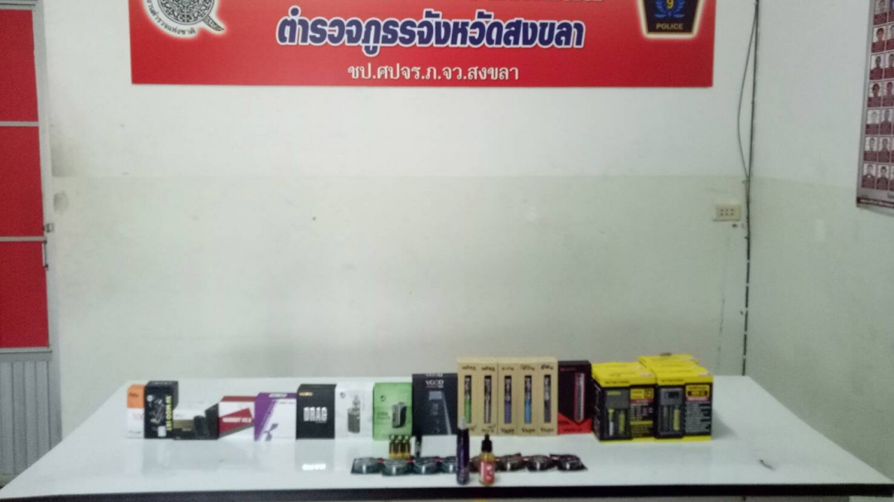 เมื่อเวลา 08.30 น. วันที่ 13 ก.ค.60 ผู้สื่อข่าวรายงานว่า พ.ต.อ.ศักดา เจริญกุล ผกก.สส.ภ.จ.สงขลา พร้อมด้วย พ.ต.ท.พงษ์สวัสดิ์ อินทสรสว.ฯ/หน.ชป.ศปจร.ภ.จว.สงขลา นำกำลังเจ้าหน้าที่ตำรวจชุดสืบสวน ภ.จ.สงขลา จำนวนหนึ่งเข้าตรวจสอบที่ร้านแม๊ก บริเวณตลาดสันติสุข อ.หาดใหญ่ จ.สงขลา พบภายในร้านมีการนำเครื่องสูบบุหรี่ไฟฟ้าและน้ำยาเติมบุหรี่ไฟฟ้ามาวางจำหน่าย โดยวางบนชั้นภายในร้าน จึงได้เข้าตรวจยึดเครื่องสูบบุหรี่ไฟฟ้ายี่ห้อต่างๆ จำนวน 19 เครื่อง เครื่องชาร์จถ่าน รุ่น NEW I2 จำนวน 5 เครื่อง, น้ำยาบุหรี่ไฟฟ้ายี่ห้อ POOKY จำนวน 1 ขวด, น้ำยาบุหรี่ไฟฟ้า ยี่ห้อ DRIPADDICT จำนวน 1 ขวด และขดลวดอะตอมไฟฟ้า ยี่ห้อ LD จำนวน 8 ชิ้น พร้อมควบคุมตัว น.ส.จันทร์เพ็ญ แก้วจินดา อายุ 50 ปี อยู่บ้านเลขที่ 74 ซ.4 ถ.รัตนอุทิศ อ.หาดใหญ่ จ.สงขลา ก่อนแจ้งข้อหา "ขายสินค้า บุหรี่ไฟฟ้า หรือน้ำยาสำหรับเติมบุหรี่ไฟฟ้า โดยผิดกฎหมาย, ช่วยซ่อนเร้น ช่วยจำหน่าย ช่วยพาเอาไปเสีย ซื้อ รับจำนำ หรือรับไว้โดยประการใดซึ่งของอันตนรู้ว่าเป็นของที่ยังมิได้เสียค่าภาษี หรือของต้องห้ามหรือที่เข้ามาในราชอาณาจักรโดยยังมิได้ผ่านศุลกากรโดยถูกต้อง หรือเป็นของที่นำเข้ามาในราชอาณาจักรโดยหลีกเลี่ยงอากร ข้อจำกัด หรือข้อห้ามอันเกี่ยวแก่ของนั้น"