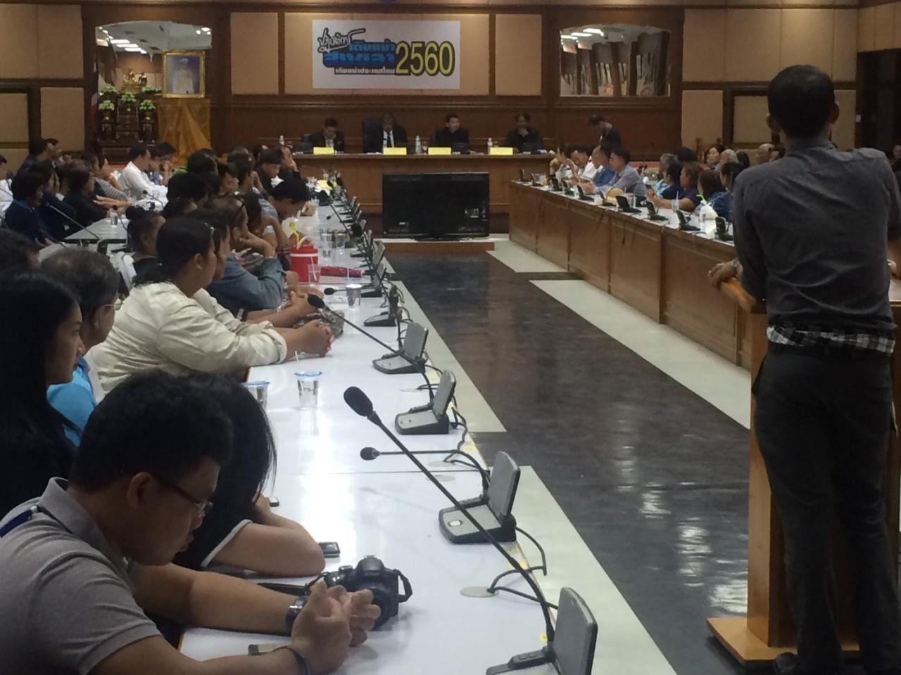 ทั้งนี้ การประชุมดังกล่าวมีประธานสมาพันธ์เกษตรกรจังหวัดสงขลา แกนนำชาวสวนยาง และตัวแทนจากภาครัฐร่วมประชุมประกอบด้วย พ.อ.ธัญญาเทพ บรรพบุรุษภักดี รอง ผอ.รมน.สงขลา (แทน) ว่าที่ ร.ต.ศุภชัย จันทร์แก้ว หัวหน้ากองแผนและวิชาการเขตภาคใต้ นายอนุมัติ อาหมัด ผู้แทนจาก สนช. นายวีระพันธ์ ด้วงแป้น ผอ.กยท.จ.สข. โดยกลุ่มชาวสวนยางต้องการพบผู้ว่าราชการจังหวัดสงขลา แต่ไม่เคยได้พบ ทำให้ตัวแทนชาวสวนยางไม่พอใจ หลังจากแกนนำได้นำปัญหาดังกล่าวพูดคุยในห้องประชุมและนำหนังสือถึงผ่าน สนช. นายกรัฐมนตรี ได้ขอเวลา 15 วัน จะรอคำตอบหลังจากนั้นได้แยกย้ายกันกลับ.