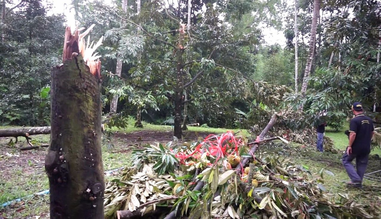 “อำเภอพะโต๊ะ เป็นพื้นที่ท่ามกลางหุบเขาสูงเขตรอยต่อกับ จ.ระนอง ถูกพายุฝนพัดกระหน่ำมีพื้นที่การเกษตร ที่อยู่อาศัยเสียหายจำนวน 4 ตำบล ขณะนี้เจ้าหน้าที่ทุกฝ่ายได้ให้ความช่วยเหลือชาวบ้านอย่างเร่งด่วนแล้ว ส่วนความเสียหายอยู่ระหว่างประเมิน สำหรับความเสียหายของผลผลิตทุเรียนคาดว่ามีมูลค่าหลายล้านบาท เนื่องจาก ทุเรียนหนึ่งต้นจะขายผลผลิตได้มากกว่าหมื่นบาทขึ้นไป” นายคมตะวัน กล่าว.