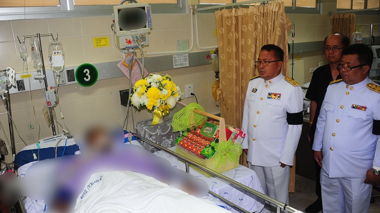 สมเด็จพระเจ้าอยู่หัวพระราชทานดอกไม้ และตะกร้าแก่ตำรวจที่บาดเจ็บ จากเหตุคนร้ายขว้างระเบิดใส่จุดตรวจต้นไทร ที่ อ.บาเจาะ เมื่อวันที่ 20 ก.ค.ที่ รพ.นราธิวาสราชนครินทร์ โดย ตร.ที่บาดเจ็บลั่นหายแล้วจะกลับมาทำงานต่อ...