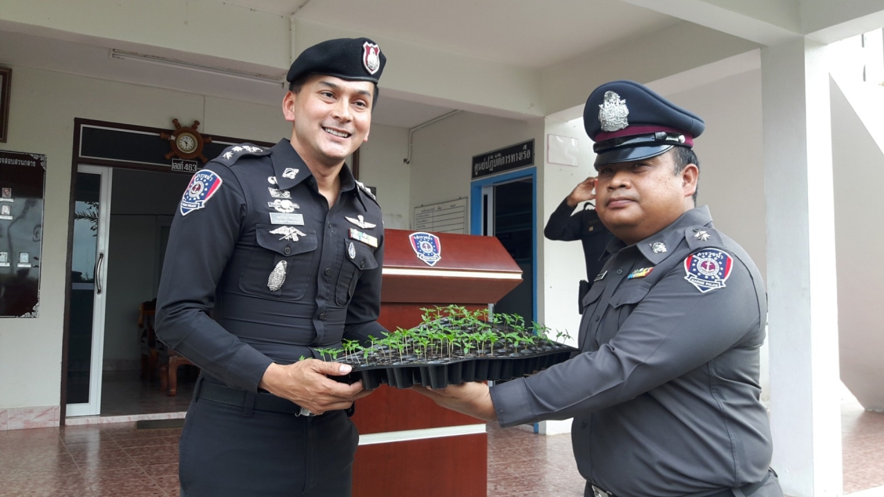 ผู้กำกับเทน ผกก.9 บก.รน.มอบนโยบายตำรวจน้ำสตูล พร้อมกล้าต้นดาวเรืองปลูกรอบบริเวณโรงพัก เพื่อให้ดอกสีเหลือง บานในช่วงพระราชพิธีถวายพระเพลิงพระบรมศพ ในหลวง ร.9 ขณะที่แม่บ้านแฟนละคร มาขอดูตัวจริง ผกก. บอกหล่อกว่าในทีวี...