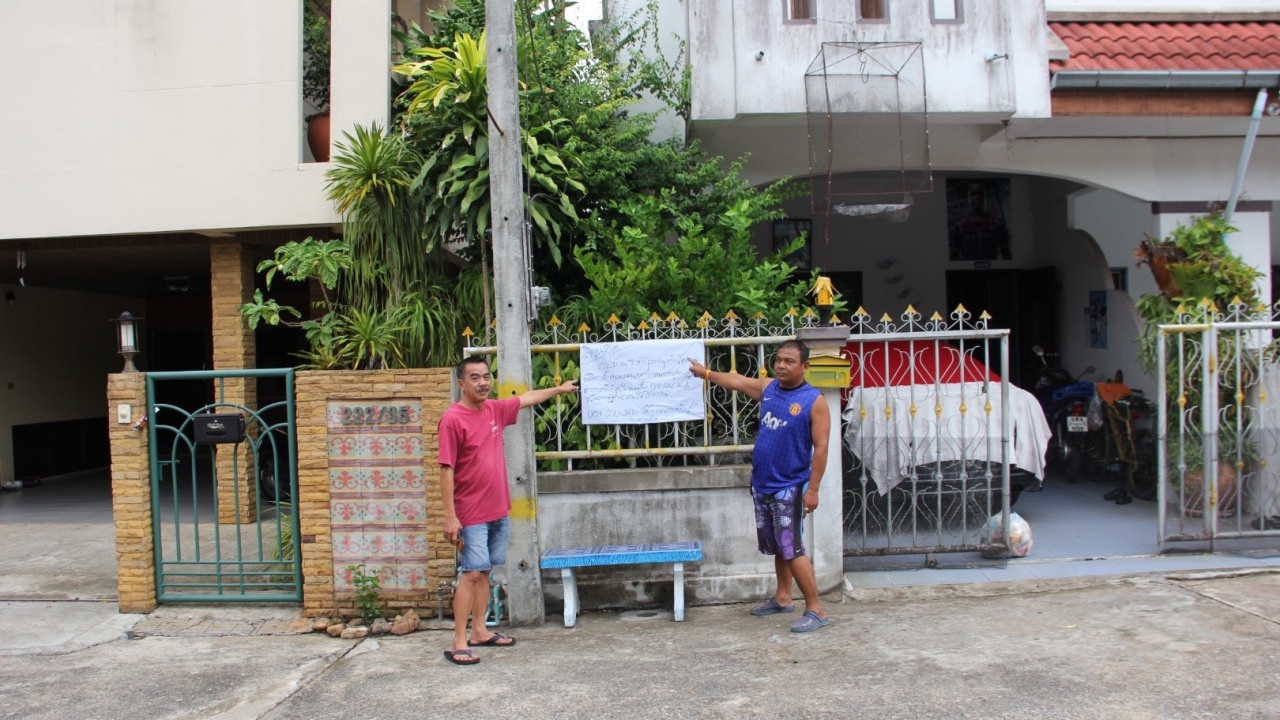 ชาวบ้านชุมชนโฉลกรัฐ 16 เขตเทศบาลนครสุราษฎร์ธานี สุดทน แห่ติดป้ายประกาศขายบ้านกันเป็นแถว หลังทนกลิ่นขยะจากจุดพักรถของเทศบาลไม่ไหว