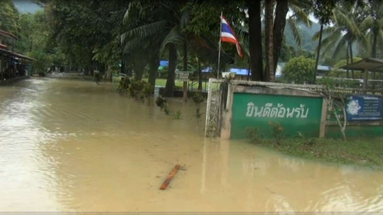 น้ำป่าไหลทะลักจากเทือกเขาบรรทัดเข้าท่วมพื้นที่ อ.ย่านตาขาว จ.ตรัง บ้านพ่อนักร้องดัง บ่าววี อาร์สยาม ต้องขนของหนีน้ำกันจ้าละหวั่น หลังจากฝนตกหนักหลายรอบ ขณะที่โรงเรียนชั้นประถมศึกษาและมัธยมศึกษาสั่งปิด 2 โรงเพราะโดนน้ำท่วม...