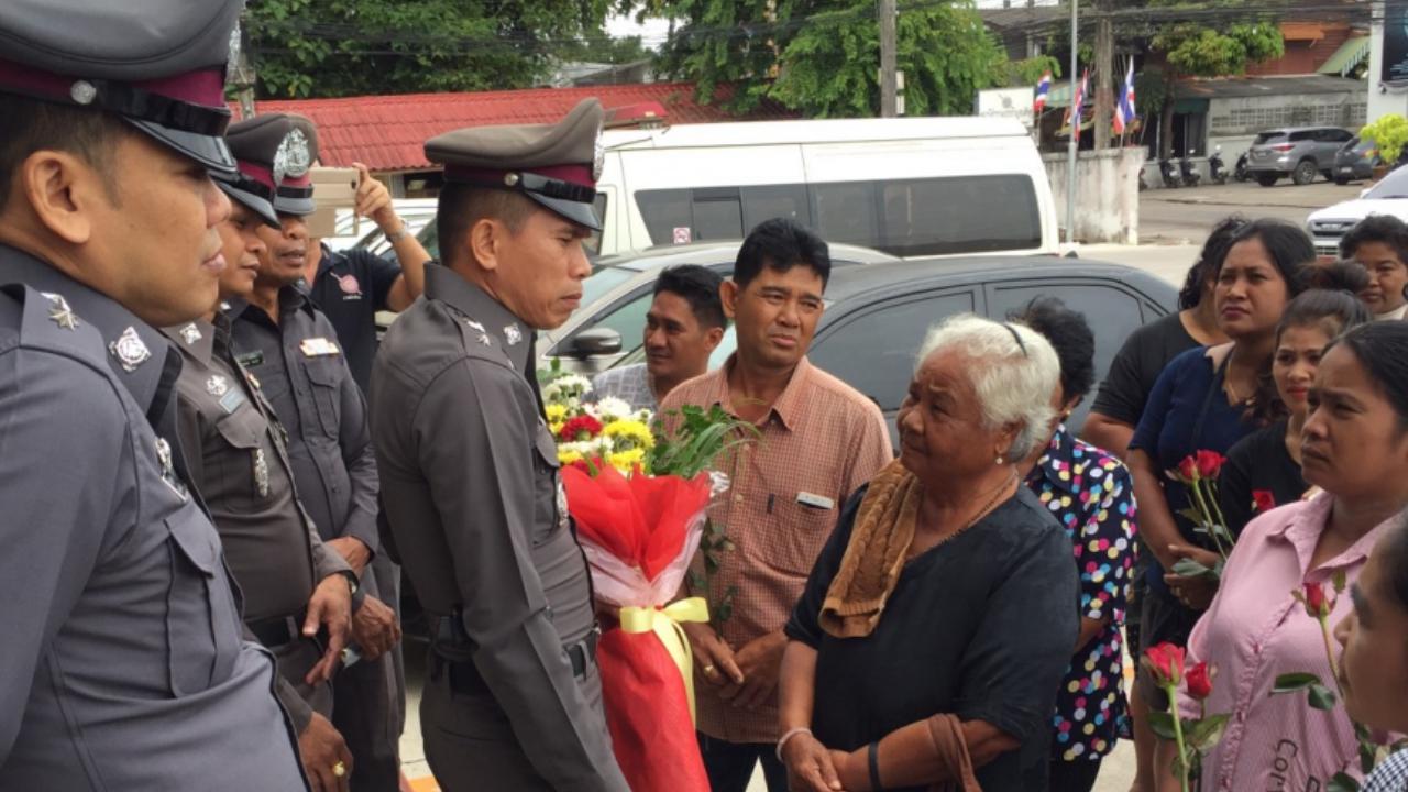 ชาวบ้านกว่า 40 ราย หอบดอกไม้แสดงความขอบคุณ ตำรวจ สภ.กาญจนดิษฐ์ จับสาวใหญ่ตุ๋นชาวบ้าน โกงแชร์น้ำมัน ในลักษณะแชร์ลูกโซ่ เสียหายกว่า 10 ล้านบาท เพิ่งพ้นโทษเรือนจำธนบุรี ตร.สุราษฎร์ธานี นำหมายอายัดตัวจับต่อคดีเดียวกัน