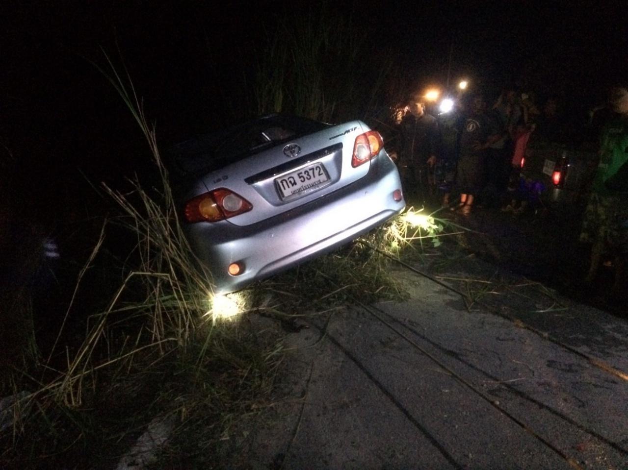 ชาวบ้านที่เห็นเหตุการณ์ ให้การกับตำรวจว่า รถเก๋งคันที่เกิดเหตุ ขับมาตามถนนสายหนองหนอน – ท่าเรือ เมื่อมาถึงที่เกิดเหตุ จู่ๆได้เสียหลัก พุ่งจากถนน ตกในไปในคลอง ชาวบ้านและอาสาสมัครของมูลนิธิ รีบเข้าช่วยเหลือ แต่รถจมอยู่ในน้ำเป็นเวลานานพอสมควร กว่าที่จะสามารถชักลากและดึงรถขึ้นมาจากน้ำได้