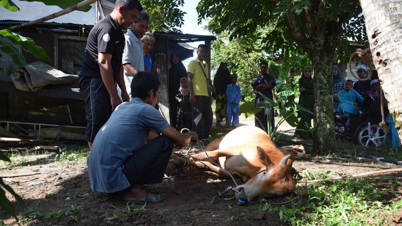 ชาวมุสลิมค่อนข้างมีฐานะ ใน จ.นราธิวาส ร่วมลงหุ้นซื้อวัวมาทำการ กุรบาน เชือดวัวแจกคนจน คนด้อยโอกาสในวันรายอฮัจยี