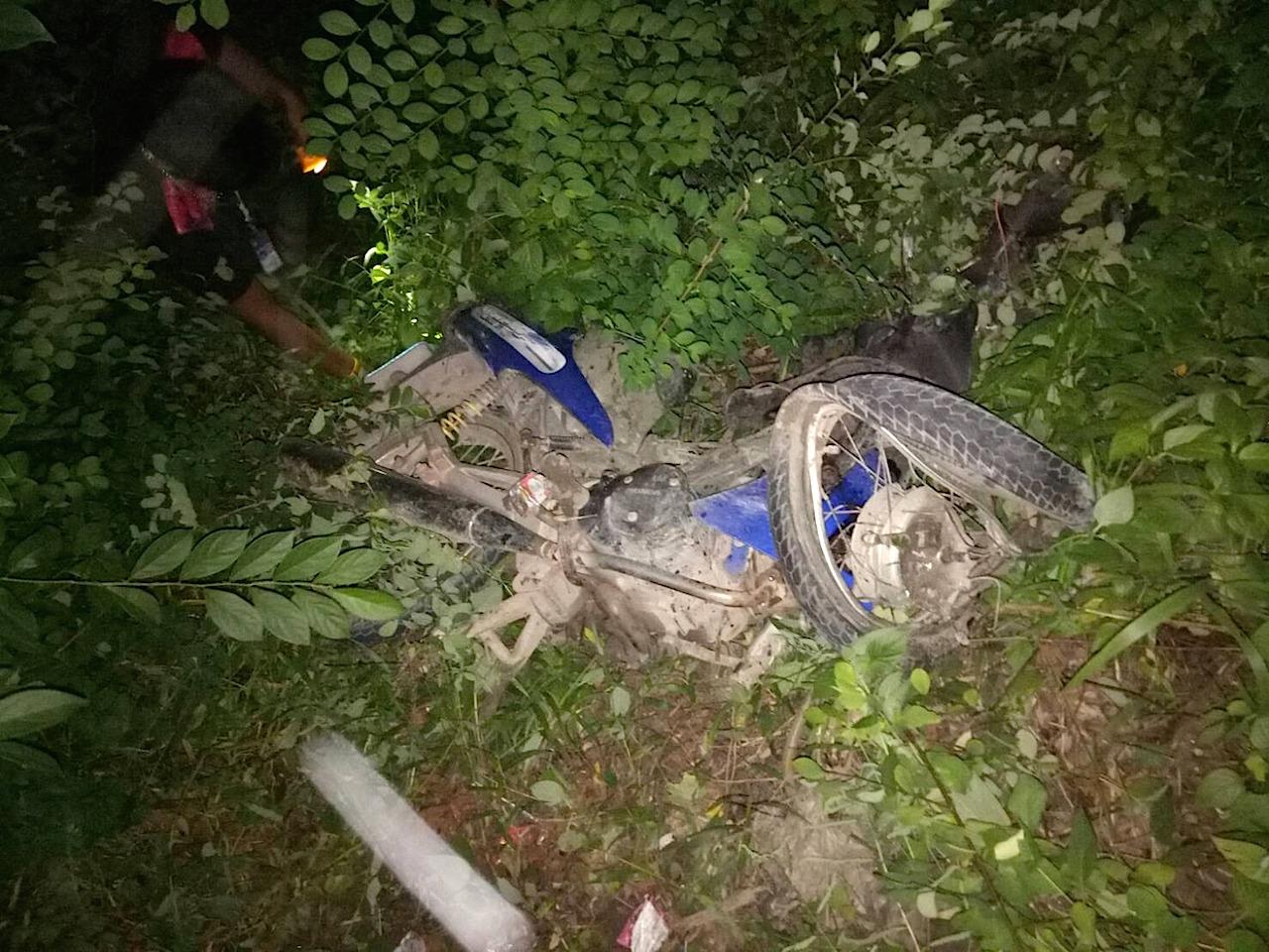 ในที่เกิดเหตุพบรถยนต์ยี่ห้อ MG สีเลือดหมูป้ายแดง ทะเบียน 1-1889 สุราษฏร์ธานี ตกลงไปอยู่ในร่องกลางถนน สภาพหน้ารถพังยับ กระจกแตกร้าว ห่างออกไป 6 เมตร พบรถจักรยานยนต์ยี่ห้อฮอนด้า เวฟ สีน้ำเงิน ทะเบียน ขลค 45 นครศรีธรรมราช ถูกชนกระเด็นตกลงไปอยู่ในพงหญ้าฝั่งตรงกันข้ามกับรถยนต์ พบผู้เสียชีวิต 2 ราย ทราบชื่อในเวลาต่อมาคือ นายสมใจ ไกรสิทธิ์ อายุ 44 ปี อยู่บ้านเลขที่ 3/1 หมู่ 3 ต.ถ้ำพรรณรา คนขี่ ส่วนอีกคนคือ นายวินัย สืบรอง อายุ 59 ปี อยู่บ้านเลขที่ 14 หมู่ 3 ต.ถ้ำพรรณรา ทั้งคู่มีบาดแผลฉีกขาดหลายแห่ง โดยเฉพาะซีกซ้ายของร่างกาย