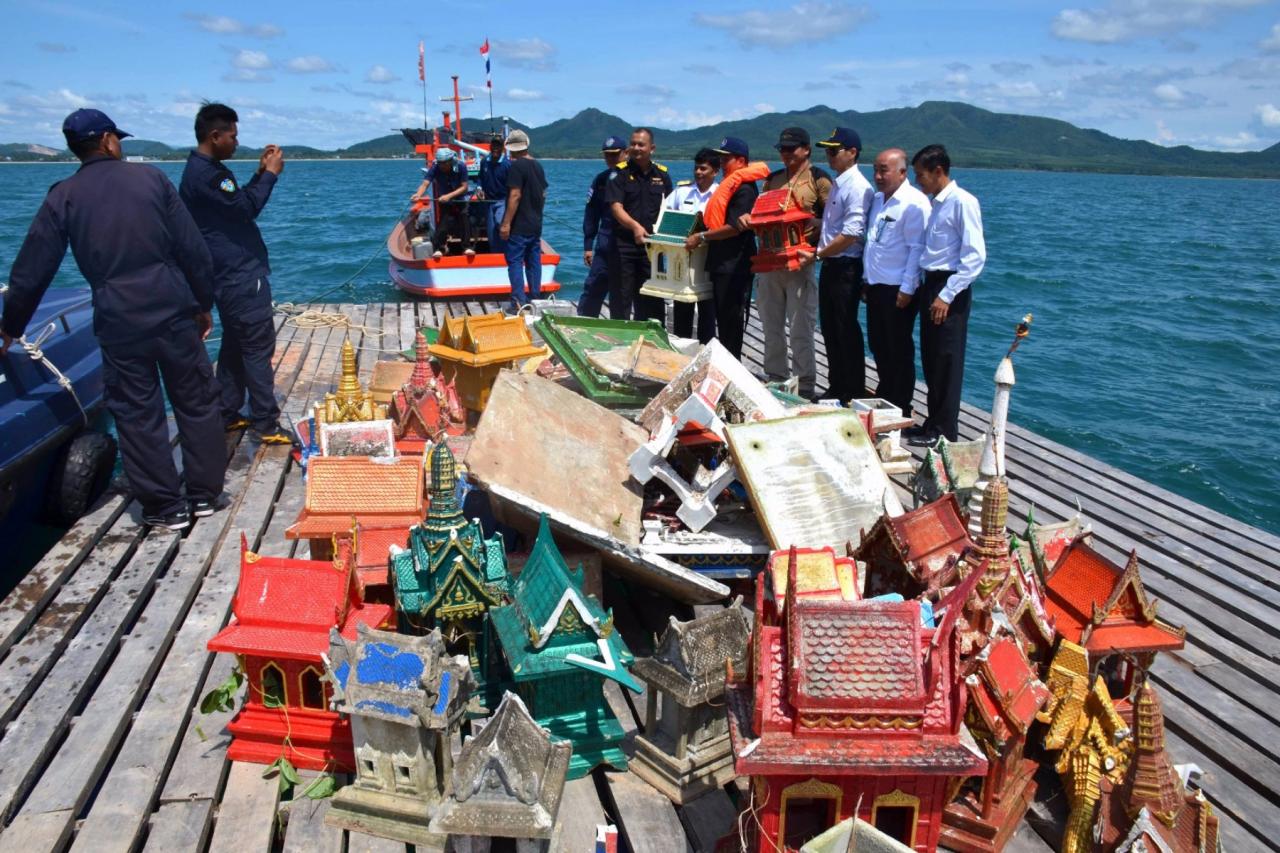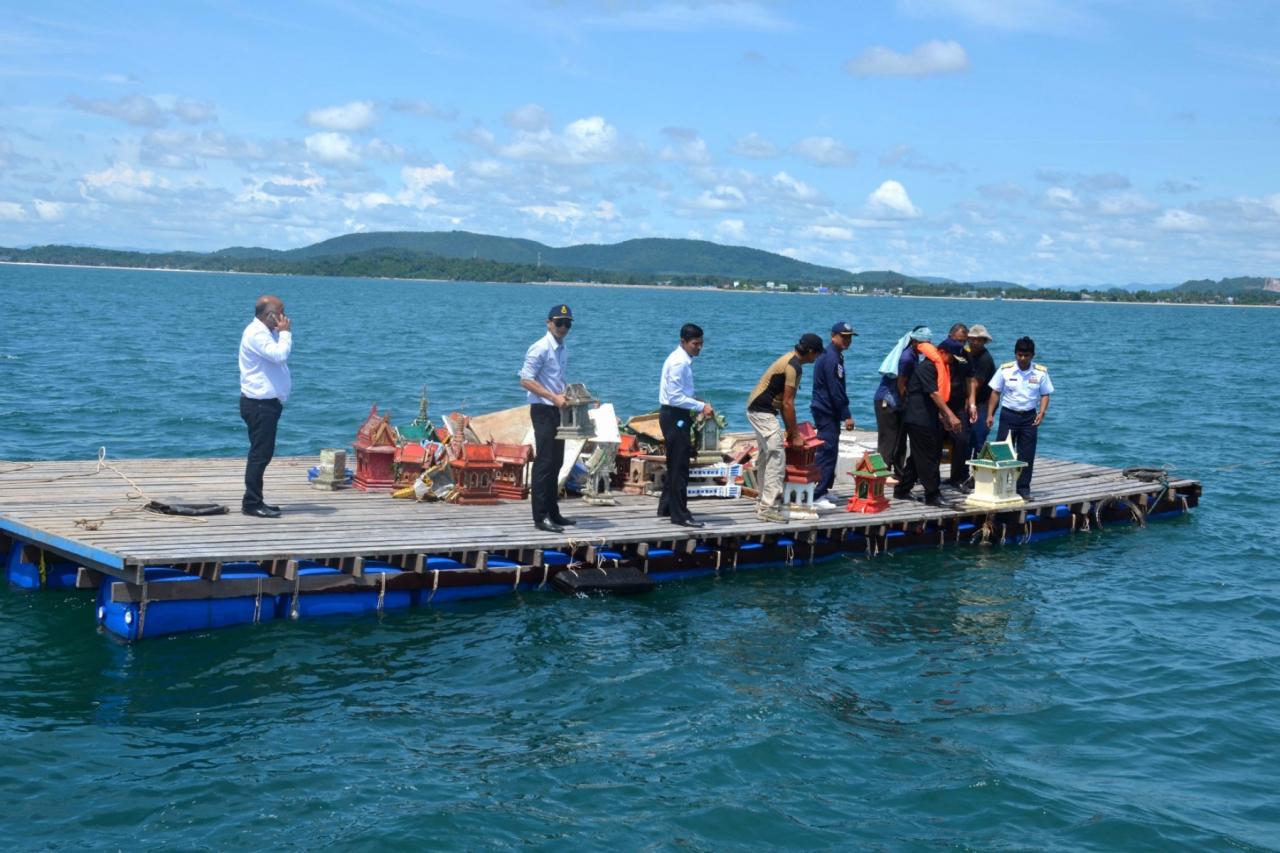 หลังเสร็จพิธีปล่อยพันธุ์สัตว์น้ำผู้ว่าราชการจังหวัดชุมพร พร้อมคณะผู้เกี่ยวข้องได้ลงเรือหน่วยป้องกันและปราบปรามประมงทะเลชุมพร เพื่อนำศาลพระภูมิรูปทรงไทยสภาพเก่าชำรุดเสียหายจำนวนมาก บรรทุกใส่แพขนาดใหญ่แล้วใช้เรือประมงลากออกไปในทะเลหน้าอ่าวตำบลสะพลีห่างจากฝั่งประมาณ 5 กิโลเมตร เพื่อปล่อยลงสู่ก้นทะเล สร้างเป็นหมู่บ้านปลาทรงไทยให้สัตว์น้ำได้เป็นแหล่งอยู่อาศัยแพร่ขยายพันธุ์