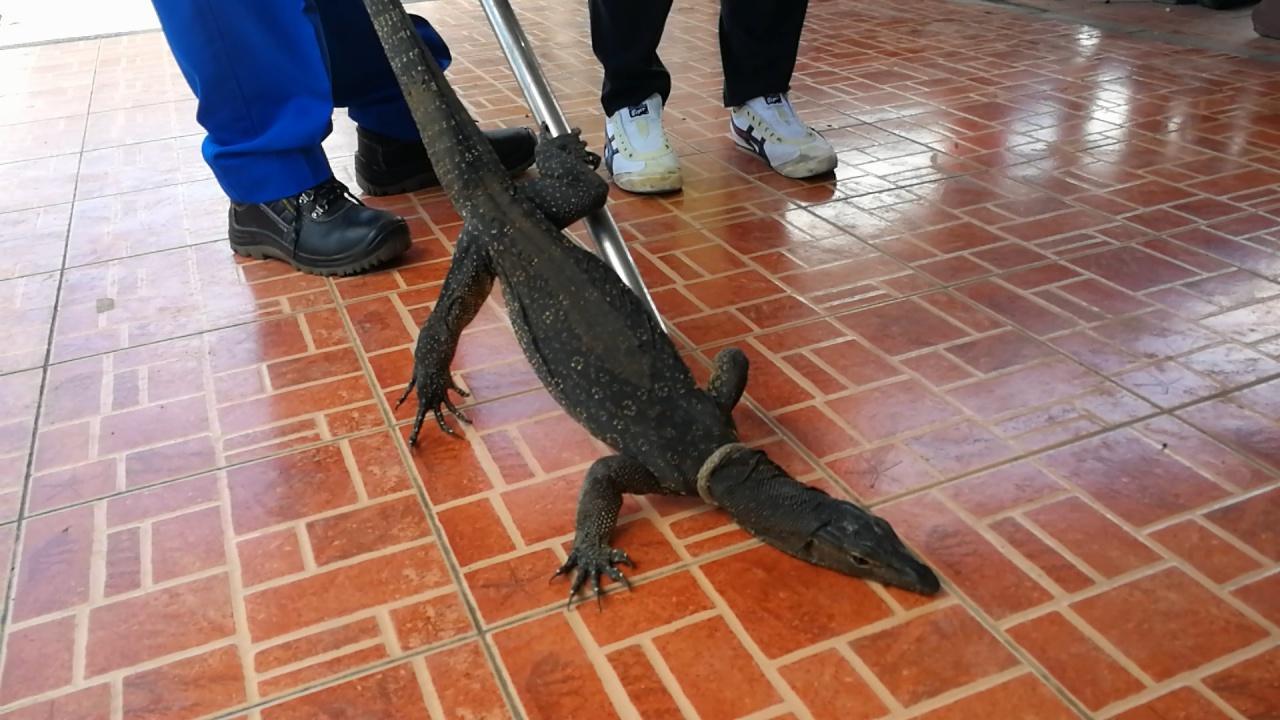 เมื่อไปถึง พบเจ้าตัวเงินตัวทองเข้าไปหลบอยู่ในซอกเก็บของข้างบันได ตรงที่สระผมของลูกค้า หน่วยกู้ภัยจึงค่อยๆ คุ้ยหาจนพบตัวเงินตัวทอง ยาวประมาณ 1 เมตร และใช้ห่วงคล้องคอเอาไว้ได้ แม้ว่าตัวเงินตัวทองจะพยายามดิ้นหนี