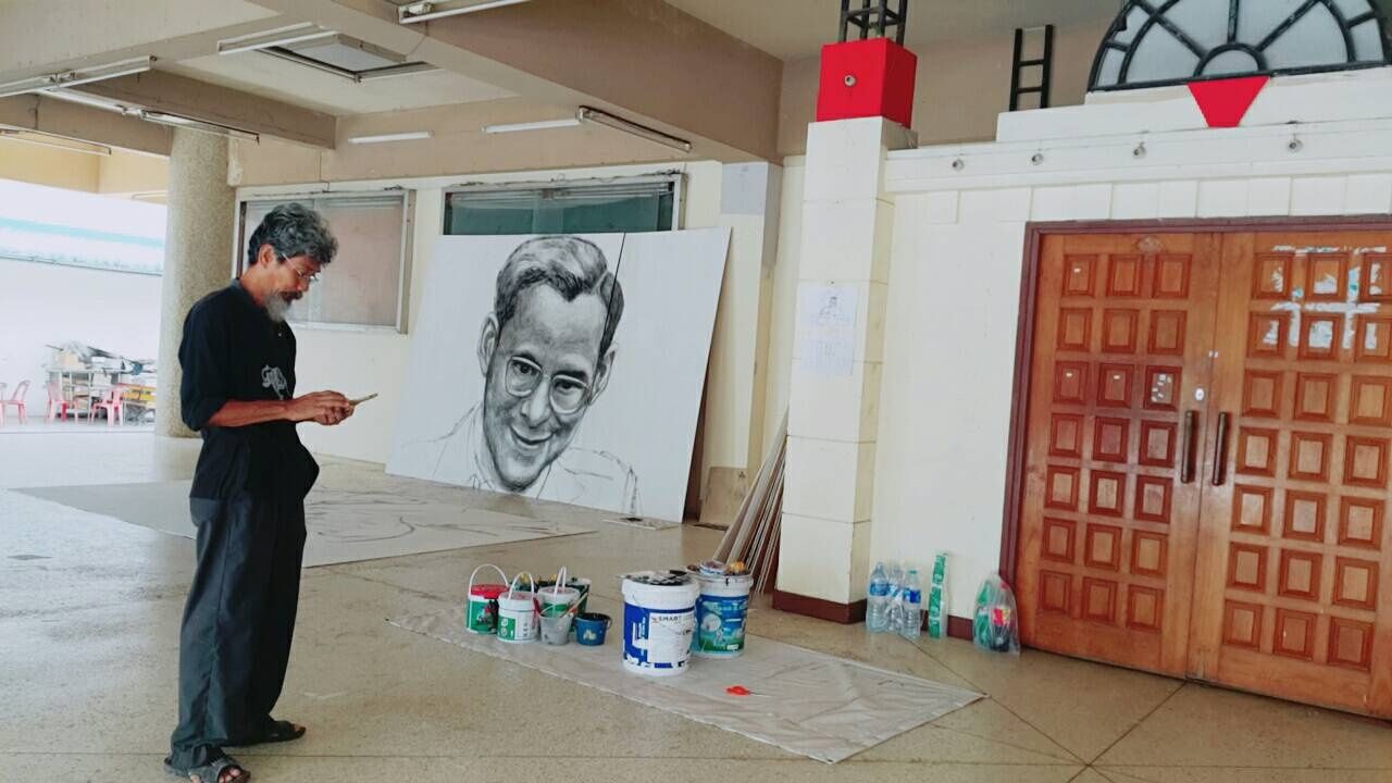 กลุ่มศิลปินอิสระใน จ.กระบี่ กว่า 10 คน ร่วมกันวาดพระบรมสาทิสลักษณ์ในหลวง รัชกาลที่ 9 ขนาดใหญ่ 5 คูณ 8 เมตร ติดตั้งหน้าโรงภาพยนตร์เก่า ถนนมหาราช น้อมรำลึกในพระมหากรุณาธิคุณ...