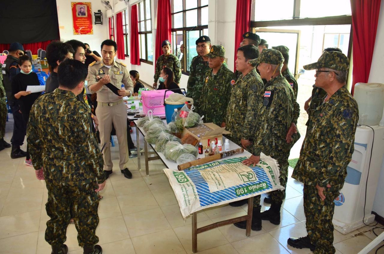 ผลจากการตรวจค้นตามจุดต่างๆ พบของกลางพืชกระท่อมสดใส่ถุงพลาสติก 8 ถุง น้ำหนักรวม 3.5 กิโลกรัม น้ำต้มกระท่อมสี่คูณร้อยใส่อยู่ในถังพลาสติกแช่เย็นขนาด 5 ลิตร 1 ถัง และบรรจุอยู่ในขวดน้ำอัดลมจัมโบ้ 1 ขวด หม้อต้มไฟฟ้า 1 หม้อ บ้องกัญชา 2 บ้อง อุปกรณ์เสพยาบ้า 1 อัน เขียงหั่นกัญชา 1 อัน ยาแก้ไอ 1 ลัง จำนวน 29 ขวด และมีดพกสั้น 1 ด้าม จึงตรวจยึดไว้เป็นของกลาง