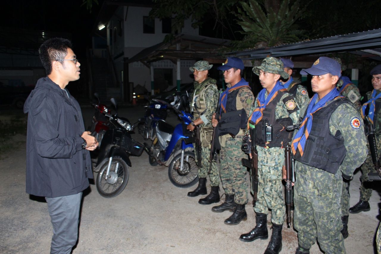 วันที่ 10 ต.ค.60 นายสาโรจน์ กาญขนพงศ์ นายอำเภอเมืองนราธิวาส ได้สั่งการให้นายอัมรัน บากา ปลัดอำเภอหัวหน้าฝ่ายความมั่นคง อ.เมืองนราธิวาส ลงพื้นที่รับผิดชอบเข้าตรวจเยี่ยมให้กำลังใจกำลังอาสาสมัครรักษาดินแดน (อส.) และกำลังภาคประชาชน กำนัน ผู้ใหญ่บ้าน และ ชรบ.ตามจุดตรวจต่างๆ ในพื้นที่ที่ออกปฏิบัติหน้าที่รักษาความปลอดภัยตามหมู่บ้านต่างๆ รวมทั้งมอบนโยบายและกำชับให้ตั้งตนอยู่ในความไม่ประมาท และให้จัดกำลังรักษาความปลอดภัยตามหลักสูตรที่ได้ฝึกมาอย่างเคร่งครัด ทั้งการเข้าและออกเวรยามต้องเน้นความปลอดภัยในชีวิตและทรัพย์สินเป็นหลัก โดยเฉพาะกำลังที่รักษาความปลอดภัยโรงเรียน สถานที่ราชการต่างๆ ต้องเพิ่มความเข้มงวดเป็นพิเศษ เนื่องจากอยู่ในพื้นที่อันตราย ซึ่งคนร้ายอาจจะแอบแฝงเข้ามาทำร้ายได้ทุกเมื่อ และหากมีเหตุร้ายเกิดขึ้นสามารถรับสถานการณ์ได้ทุกเมื่อ และพร้อมจะตอบโต้เพื่อรักษาชีวิตและทรัพย์สินของทางราชการอย่างเต็มความสามารถ