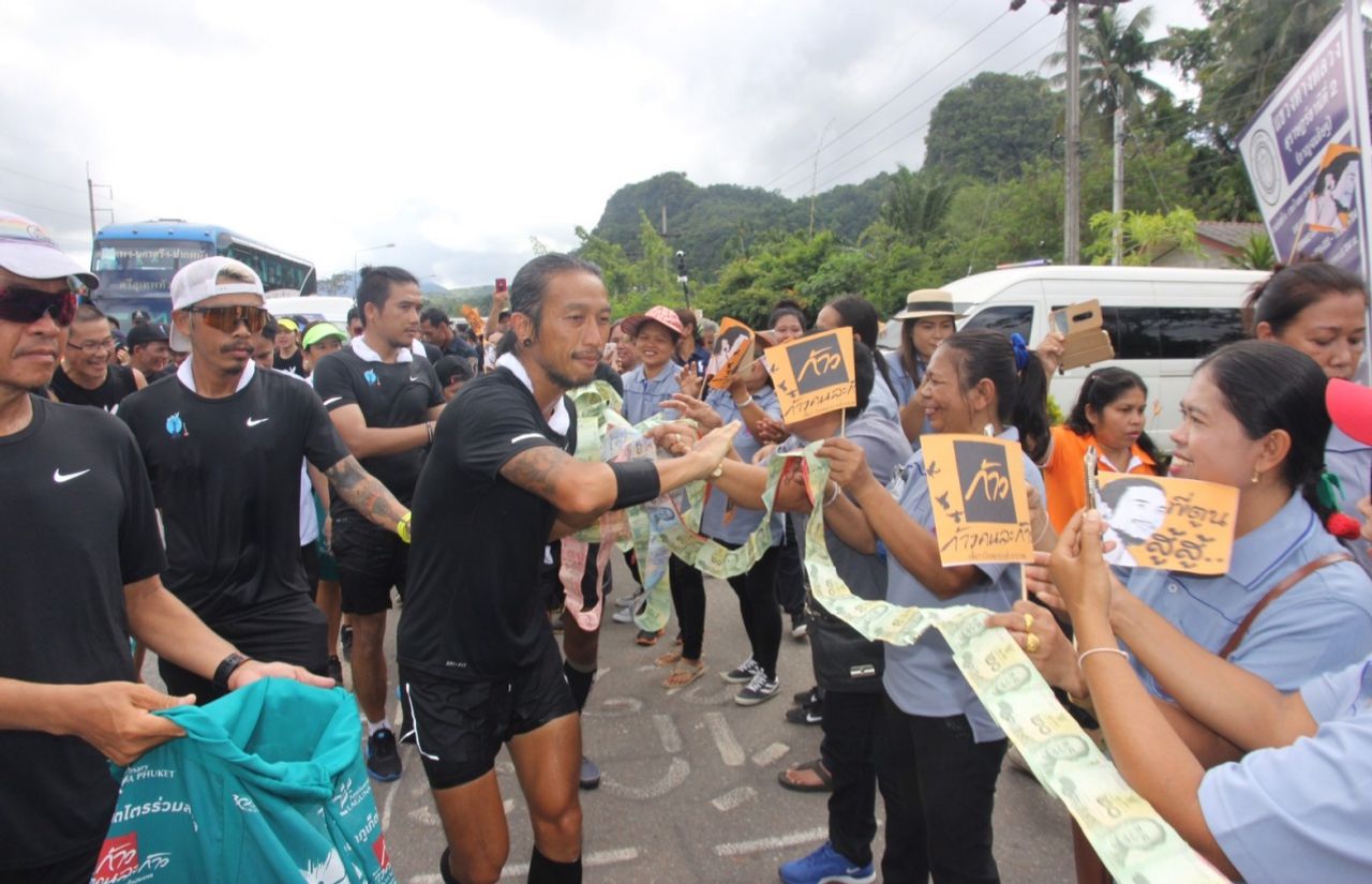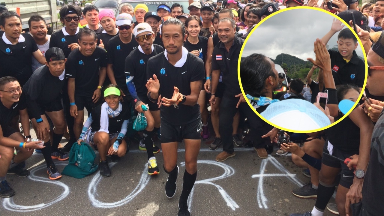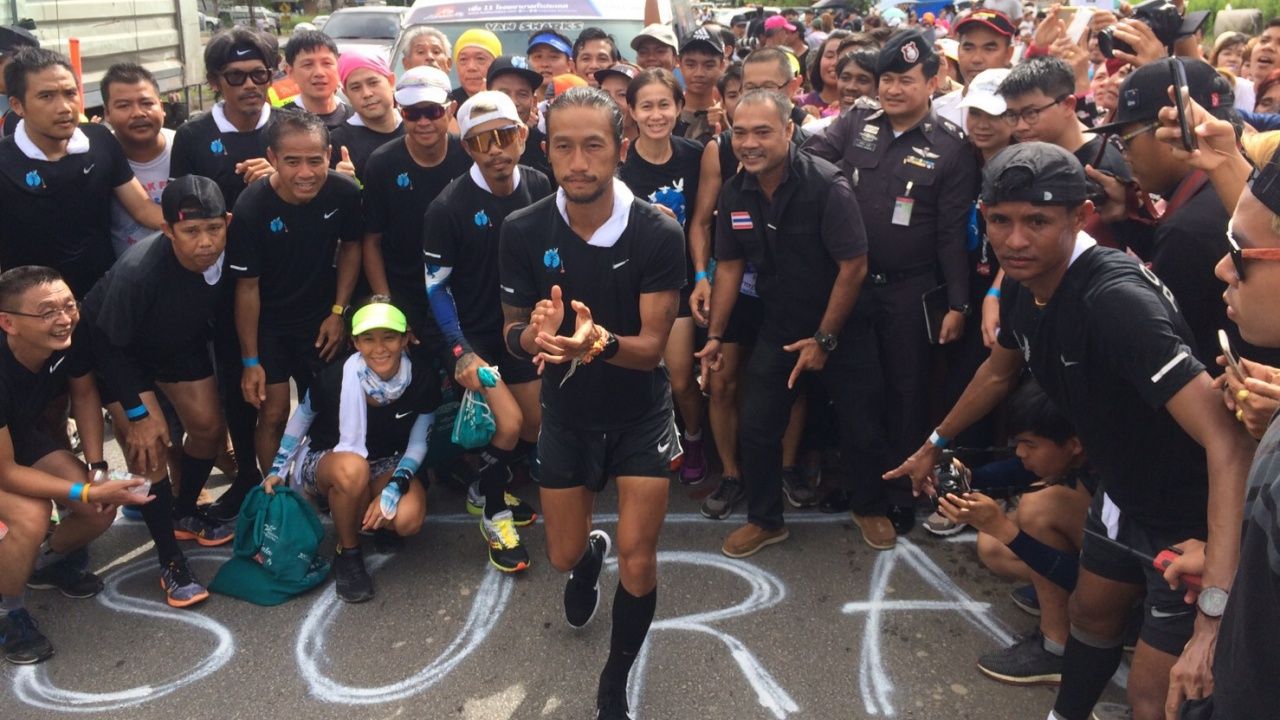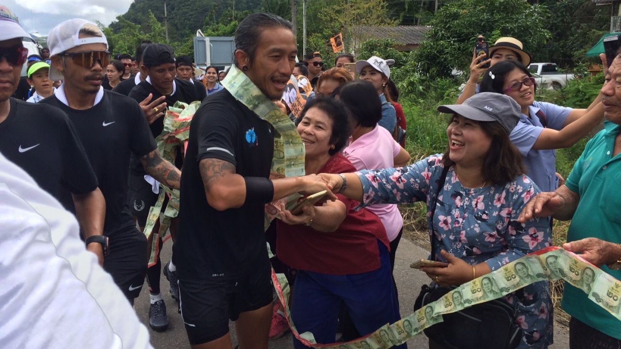 คนสุราษฎร์ฯ ร้อยธนบัตรตั้งแถวรับพี่ตูน วิ่งเขต อ.ดอนสัก มีการทำป้ายหลัก กม.540 ระยะทางที่วิ่งได้ โดยยังเหลืออีก 1,650 กม. จะถึงแม่สาย พบร่างกายมีอาการบาดเจ็บ เดินขากะเผลกเห็นได้ชัด 15 พ.ย. หยุดวิ่งเช็กอาการ 1 วัน...