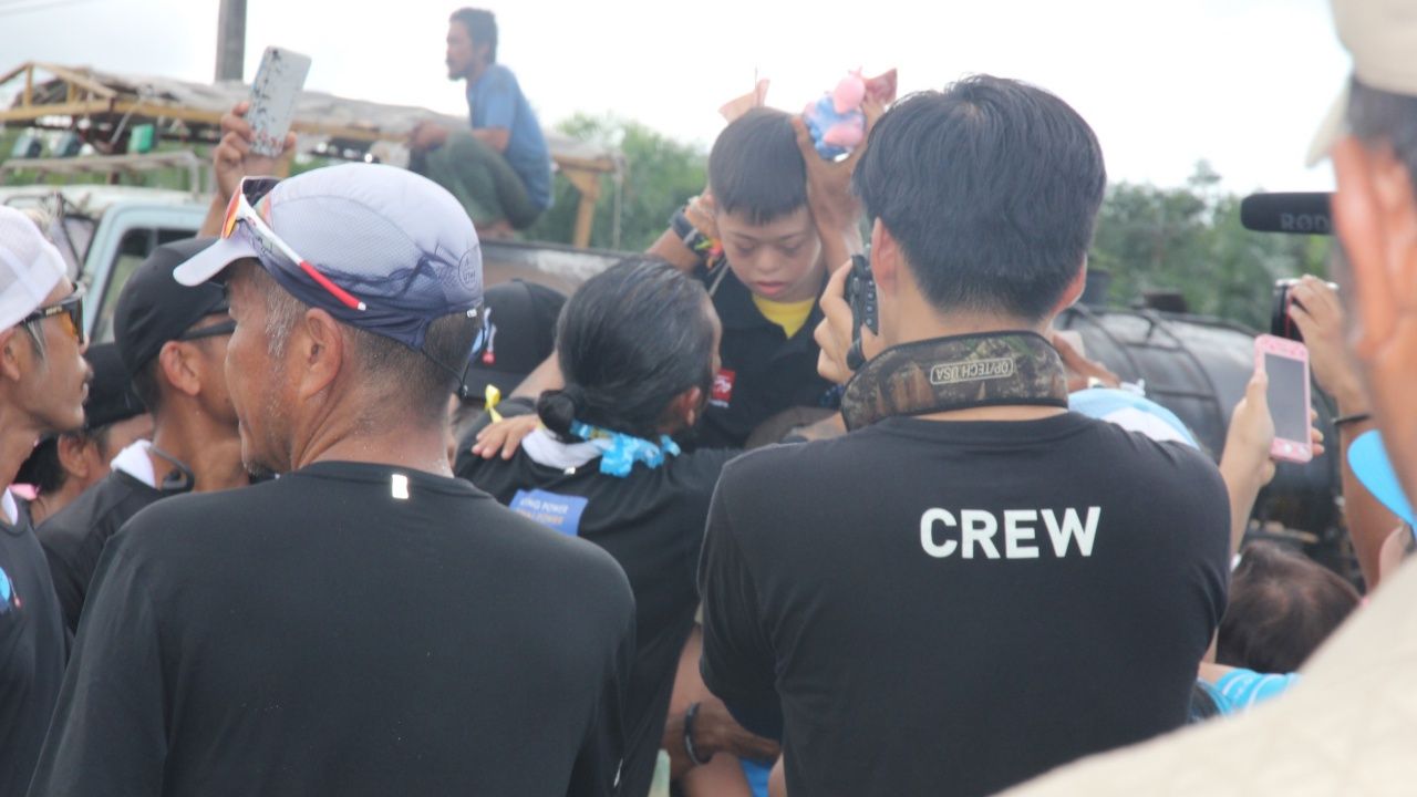 ด.ช.เด่นตะวัน กล่าวว่า ดีใจมากที่ได้พบกับพี่ตูน ตนตั้งใจมาร่วมบริจาคทำบุญด้วย ซึ่งออกมารอตั้งแต่ 8 โมงเช้าโดยคุณย่ากลัวจะไม่ได้เห็นพี่ตูนจึงให้ขี่บนคอ จนพี่ตูนเห็นเดินเข้ามาหาและสัมผัสมือกัน ทำให้มีกำลังใจอย่างมาก จะเอาพี่ตูนเป็นตัวอย่างในความอดทนและทำความดี ซึ่งตูนจะใช้เวลาพัก 1 ชั่วโมง หลังจากนั้นจะออกวิ่งในเซต 2 จาก บ.วีเจที พาราเอ็นเตอร์ไพรส์ ไปยัง ปั๊ม ปตท.ฤดีเพ็ญ บริเวณแยกบ้านใน ต.ปากแพรก ระยะ ทาง 11.7 กม.