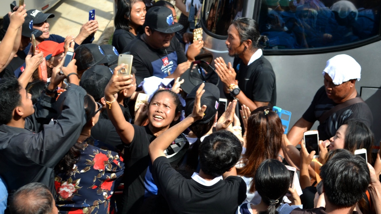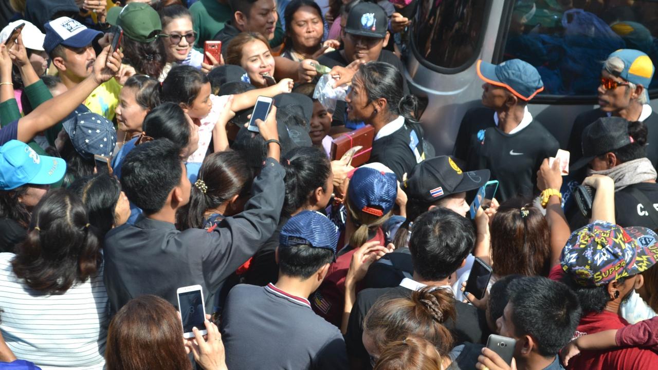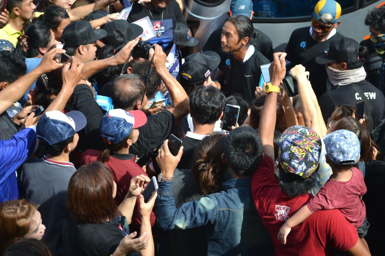 คลื่นคนไม่ยอมให้พี่ตูนหนีห่าง กลุ้มรุมเข้ามาบริจาคเงิน พร้อมโทรศัพท์มือถือกดเซลฟี่รัวๆ พร้อมเปล่งเสียงพี่ตูน สู้สู้ ดังลั่นปั๊มปตท.ใน อ.หลังสวน เจ้าตัวแม้ดูอ่อนเพลีย แต่ยังยิ้มสู้เสมอ...