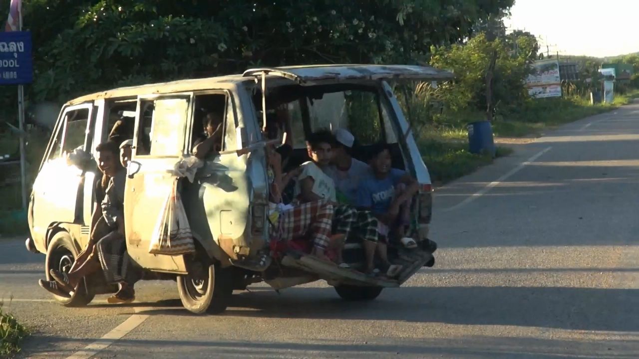 ไม่น่าเชื่อว่าจะวิ่งได้ รถตู้สุดเก่าสภาพภายนอกผุพังน่าจะจอดในสุสานรถ แต่เด็กหนุ่มโรงเรียนเอกชนสอนศาสนา นั่งกันมานับสิบคน ห้อยขาเฮฮากินลมชมวิว แถมเครื่องยังแน่น วิ่งฉิวบนถนน..