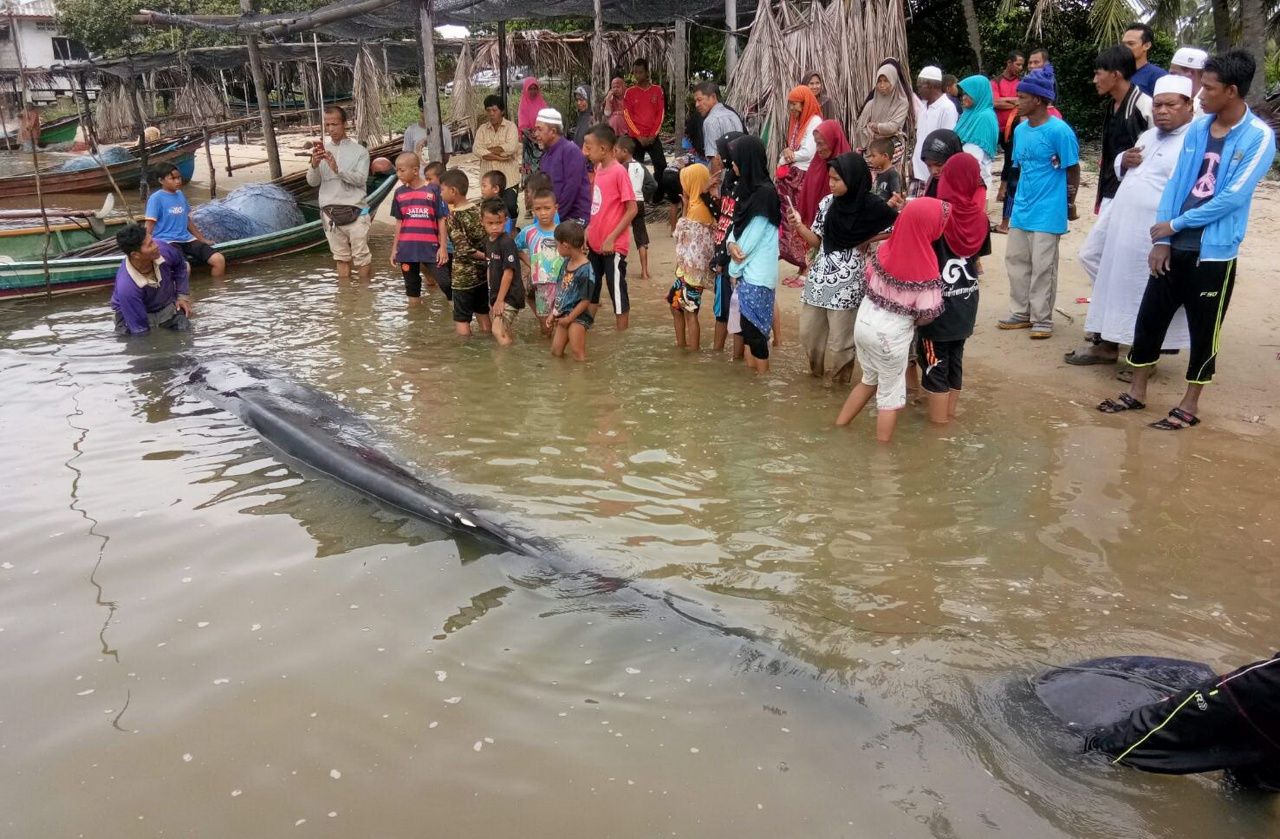 ชาวบ้านในพื้นที่เล่าว่า ในช่วงเวลาดังกล่าว ได้เห็นเงาดำๆ ที่ริมชายฝั่ง แต่เมื่อเข้าไปดูพบว่าเป็นปลาตัวใหญ่และไม่เคยเห็น จึงได้ตะโกนเรียกให้เพื่อนบ้านช่วย ทีแรกที่เห็นนึกว่าเป็นปลาฉลาม จึงไม่กล้าเข้าไปช่วย แต่เมื่อสังเกตดูปรากฏว่าไม่ใช่ปลาฉลาม คาดว่าเป็นวาฬชนิดหนึ่ง เพราะใต้ท้องเป็นสีชมพู มีลำตัวยาวกว่า 7 เมตร น้ำหนักมากกว่า 200 กิโลกรัม