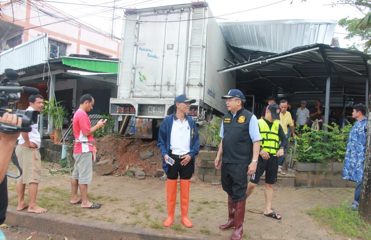 เมื่อเวลา 08.30 น. วันที่ 6 ธ.ค. ร.ต.อ.ปรีชา สุขสงค์ รอง สว.สอบสวน สภ.ดอนสัก จ.สุราษฎร์ธานี รับแจ้งเหตุรถบรรทุก 10 ล้อ เบรกแตกพุ่งเข้าชนบ้านเรือนประชาชน ริมถนนสายสุราษฎร์-นครศรีฯ บริเวณแยกไฟแดง บ้านใน หมู่ 1 ต.ปากแพรก จึงประสานเจ้าหน้าที่กู้ภัยมูลนิธิกุศลศรัทธาสุราษฎร์ธานี เข้าตรวจสอบที่เกิดเหตุ พร้อมด้วย พ.ต.อ.สุทธิ นิติอัครพงษ์ ผกก.สภ.ดอนสัก และ นายวิชวุทย์ จินโต ผวจ.สุราษฎร์ธานี ร่วมเข้าตรวจสอบ หลังมาพบเหตุขณะจะไปติดตามสถานการณ์น้ำท่วม