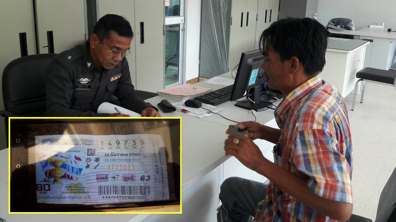 เมื่อเวลา 12.30 น. วันที่ 14 ธ.ค. ได้มี นายอภิชาติ พรหมจันทร์ อายุ 50 ปี อยู่บ้านเลขที่ 16/94 หมู่บ้าน สวป.หมู่ 11 ต.ท่ายาง อ.ทุ่งใหญ่ จ.นครศรีธรรมราช อาชีพพ่อค้าขายปลาสดตามตลาดนัด เข้าแจ้งต่อ ร.ต.อ.พงษ์วุฒิ วุฒิพงษ์ รอง สว.(สอบสวน) สภ.ทุ่งใหญ่ จ.นครศรีธรรมราช ว่า เมื่อ 2 วันที่ผ่านมาได้ซื้อลอตเตอรี่จากพ่อค้าขายลอตเตอรี่คนอีสาน ที่ขี่รถจักรยานตระเวนขายไปทั่วที่บ้านห้วยสาร ต.สินปุน อ.เขาพนม จ.กระบี่ จำนวน 2 ใบ มีเลข 149739 งวดที่ 47 ชุดที่ 63 จำนวน 1 ใบ และเลข 149746 งวดที่ 47 ชุดที่ 77 จำนวน 1 ใบ รวม 2 ใบ พ่อค้าขายให้ในราคาใบละ 100 บาท เป็นเงิน 200 บาท
