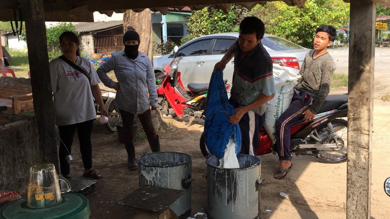 เมื่อเวลา 10.00 น. วันที่ 24 ธ.ค. ที่ลานรับซื้อน้ำยางสดบ้านนายสมบัติ สุขฉนวน อายุ 43 ปี บ้านใสมุด หมู่ 3 ต.ท่ายาง อ.ทุ่งใหญ่ จ.นครศรีธรรมราช ชาวสวนยางพาราในพื้นที่ต่างนำน้ำยางสดมาขายเช่นทุกวัน ด้วยความหวังว่าราคาน่าจะกระเตื้องขึ้นมาบ้าง เนื่องจากอยู่ในช่วงระยะเวลาที่ชาวสวนยางใกล้จะทำการปิดกรีดกันแล้วระหว่างเดือนมกราคม-เมษายน เป็นเวลา 4 เดือนเต็มเป็นช่วงที่ยางผลัดใบ จึงต้องหยุดพักเพื่อรักษาต้นยางไม่ให้หมดสภาพหรือตายก่อนกำหนดอายุของต้นยาง แต่ก็ต้องผิดหวังเมื่อทางร้านแจ้งกับลูกค้าที่นำน้ำยางมาขายให้ทราบว่าในวันนี้ราคาน้ำยางสดลดลงอย่างต่อเนื่องอยู่ที่กก.ละ 38 บาท บางพื้นที่ก็ 39 บาท จากเมื่อวันก่อนๆ ราคาน้ำยางสดอยู่ที่กก.ละ 42- 40-39 และลงเหลือ 38 บาท ในวันนี้
