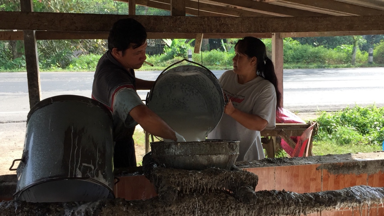 นายนิพนธ์ ต่างสี อายุ 47 ปี อาชีพรับจ้างกรีดยางกล่าวว่า ตื่นกลางดึกลงกรีดยางจนถึงเช้าเก็บน้ำยางได้ 40 กก. นำไปขายได้เงินมาก็แบ่งกับเจ้าของสวนยาง เจ้าของสวนยางได้ 60 ตนได้จริงเพียง 40 เปอร์เซ็นต์ เมื่อแบ่งเงินกันแล้วจะเหลือเงินเพียงน้อยนิด เงินที่ได้มาก็ต้องนำไปใช้จ่ายในครอบครัว แทบจะไม่พอใช้ บางวันถูกซองทำบุญช่วยงานสังคมก็ต้องไปหยิบยืมหรือกู้เงินจากเพื่อนบ้านมาใส่ซองให้เขา จึงเป็นหนี้มาตลอด